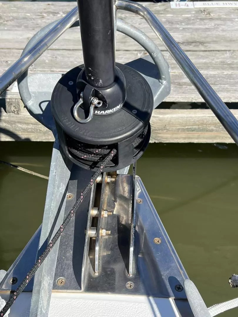 - 2 Barient #25 self-tailing cabin top winches with rope clutches