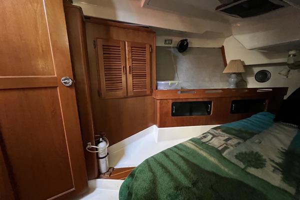 - The Master stateroom is huge with a centerline queen berth, hanging lockers and shelves outboard as well as a mirrored vanity forward.