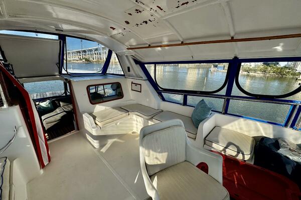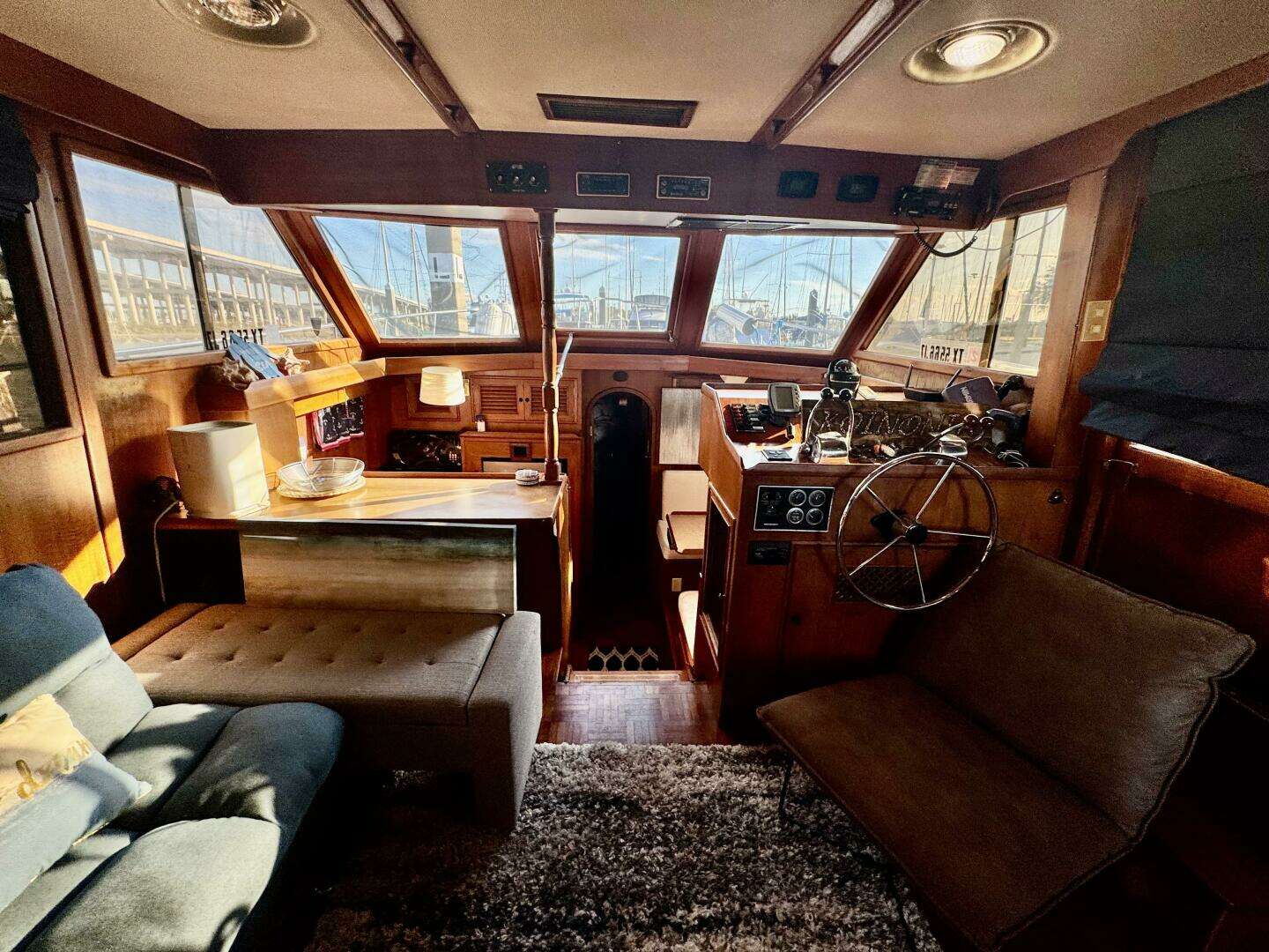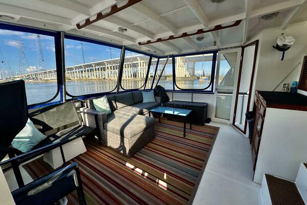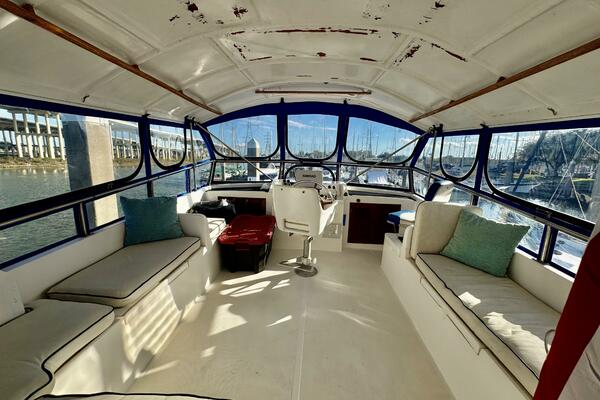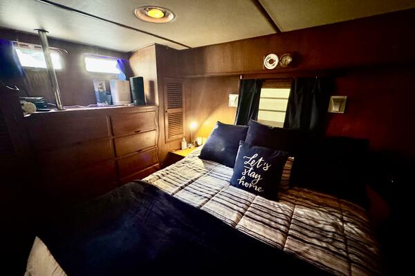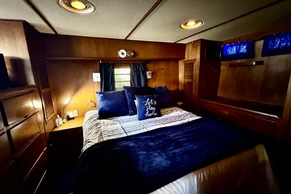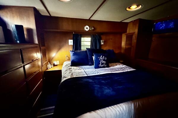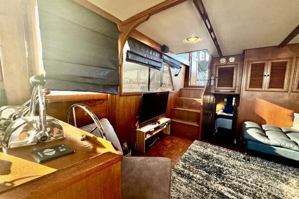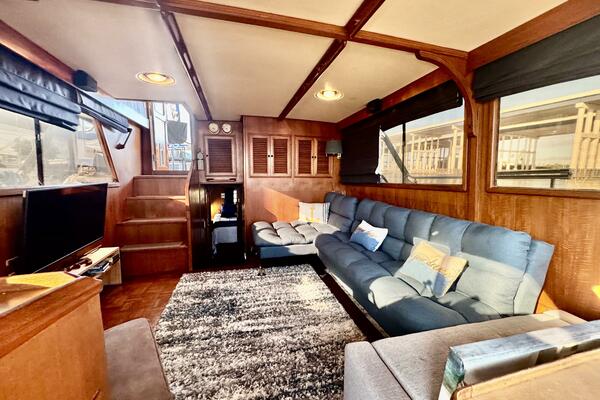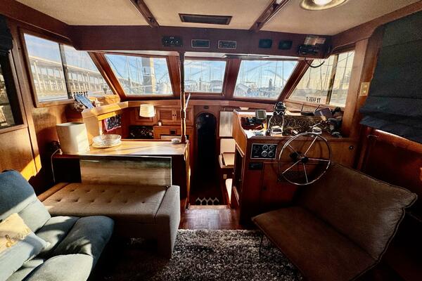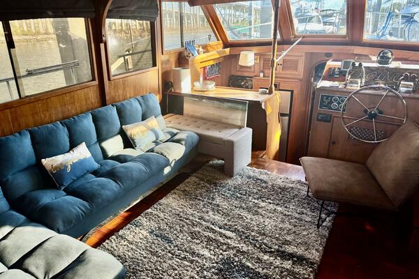 Her interior features a full-beam master aft, forward V-berth with private head, galley and dinette down, generous salon, and easy engine room access. A terrific liveaboard platform with excellent storage.