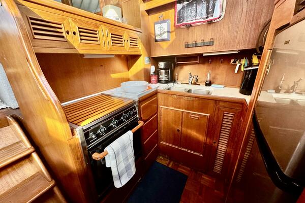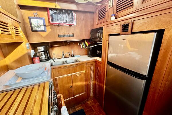 • Galley Down w/ Upright Fridge & LPG 3-Burner Stove