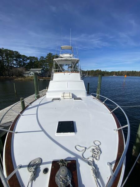"Second Chance" a 1986 Post 46 is a two-owner boat that has had great care by both dedicated owners. She has the classic lines of a blue water fishing boat, but her design features make her economical to operate both in hull form and engines. Her aft section is tapering fairly strongly at the stern with a pronounced vertical flare at the sides. A wide boat designed for a narrow water line and low wetted surface area. She's stable in a following sea. If Post is notable for anything, it is that they have achieved the right mix of quality and economy.