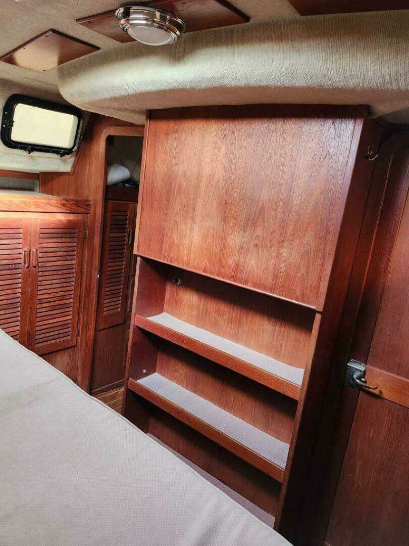 The S2 36 is renowned for an interior that feels notably larger than comparable boats in its class. The woodworking is exceptional, featuring teak cabinetry, teak doors, matching trim, and a teak and holly sole. Ananda’s interior has been well preserved and presents warm, inviting, and clean.