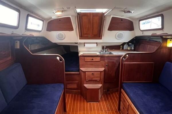 Sabre 30 is an "excellent pocket cruiser," known for its quality, handcrafted interior joinery, and spacious feel that makes it seem larger than it is. It's a comfortable and capable boat for a young family or a single-hander, with a well-appointed galley, a comfortable sleeping arrangement