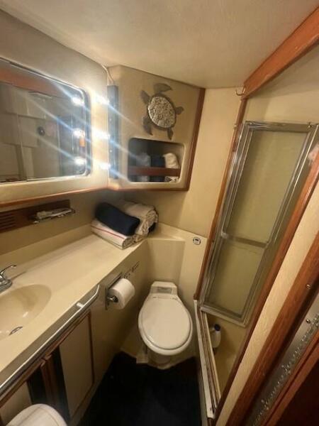 1986 Sea Ray 410 Aft Cabin Twin Gas Mercruiser 7.4L FWC approx. 1450 hours.