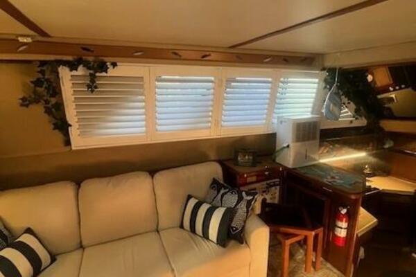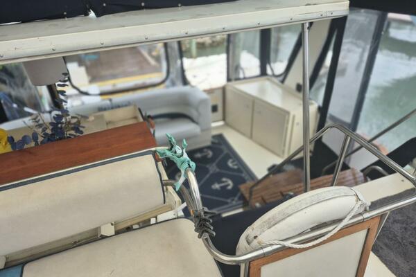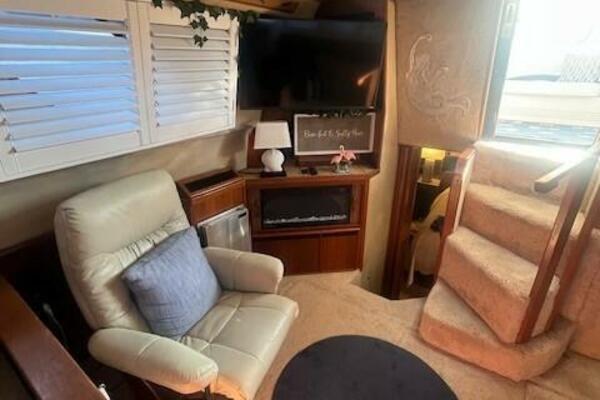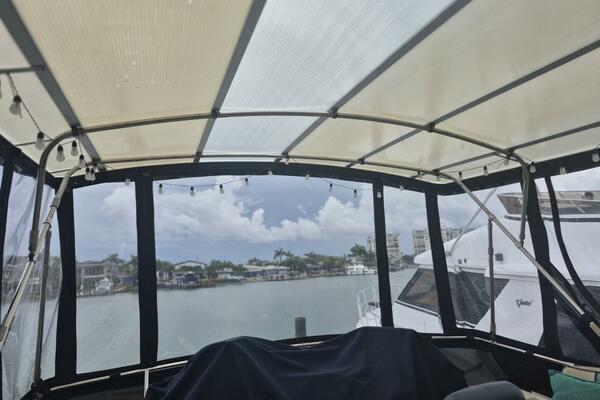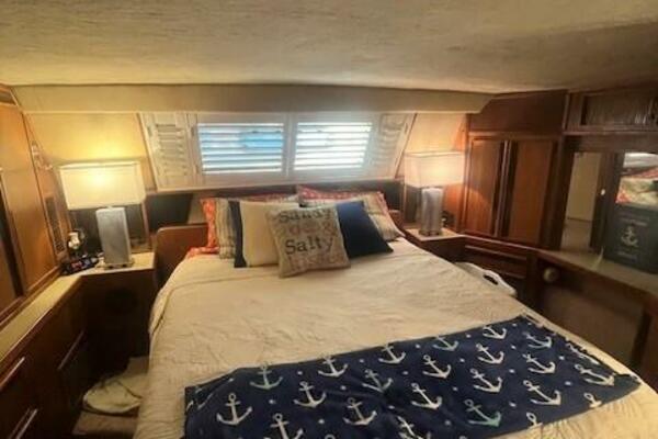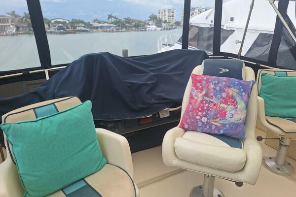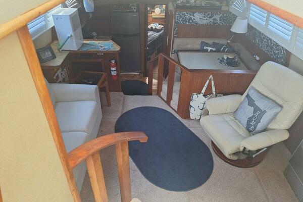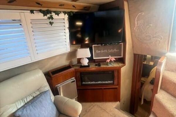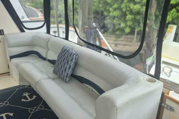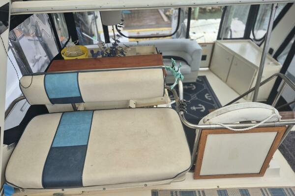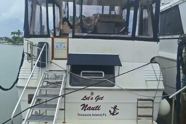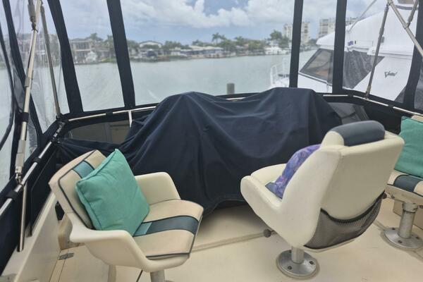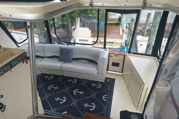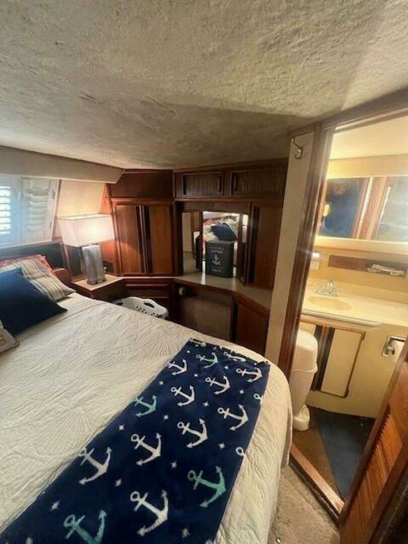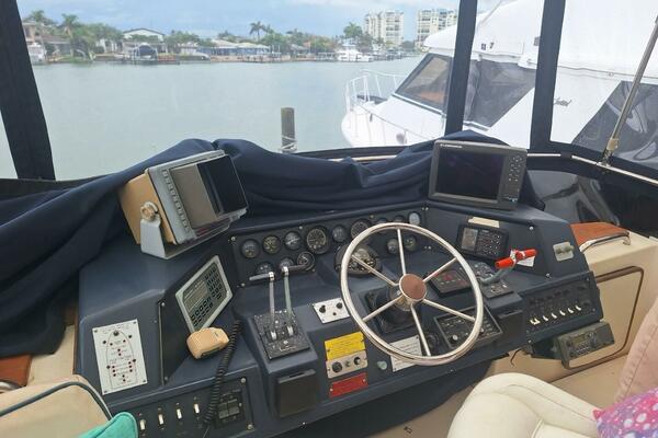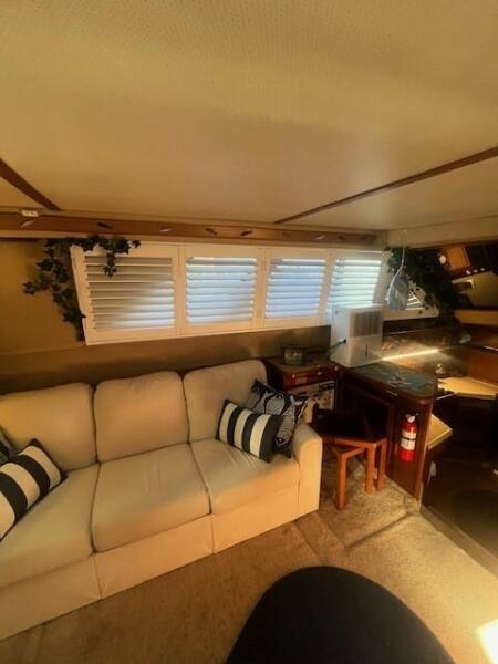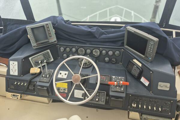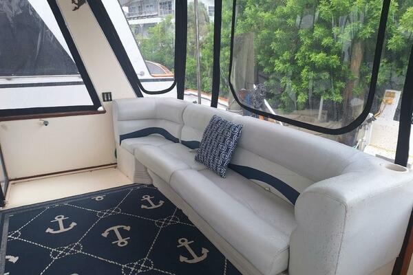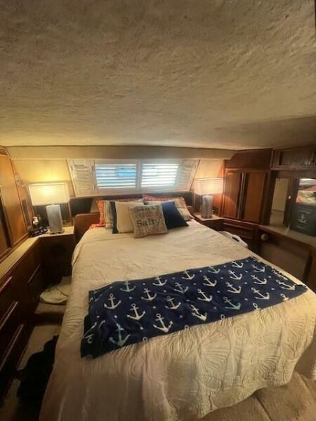 1986 Sea Ray 410 aft cabin. Powered with a pair of Mercruiser 7.4L, fresh water cooled, gas engines. Approximately 1450 hours. Last bottom paint in 2022. Salon AC replaced 2/25. Forward AC needs work, aft AC working. New Isinglass 6/25. Working generator.