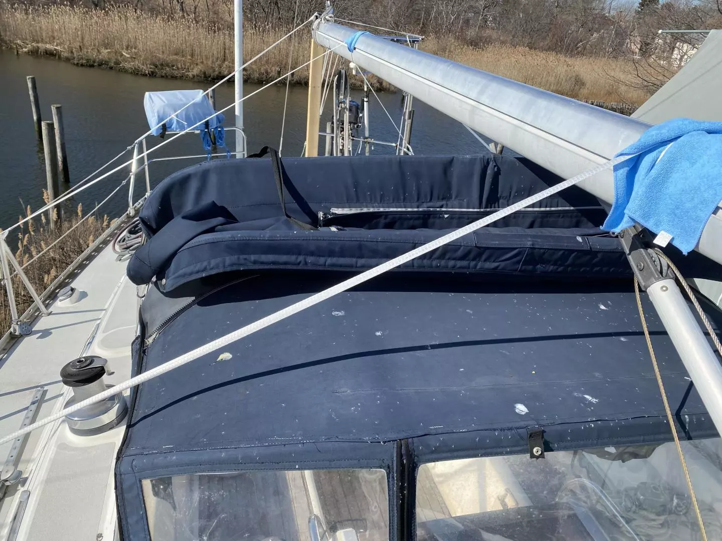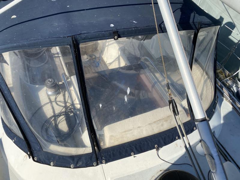 - Canvas dodger, bimini, full 6-panel cockpit enclosure