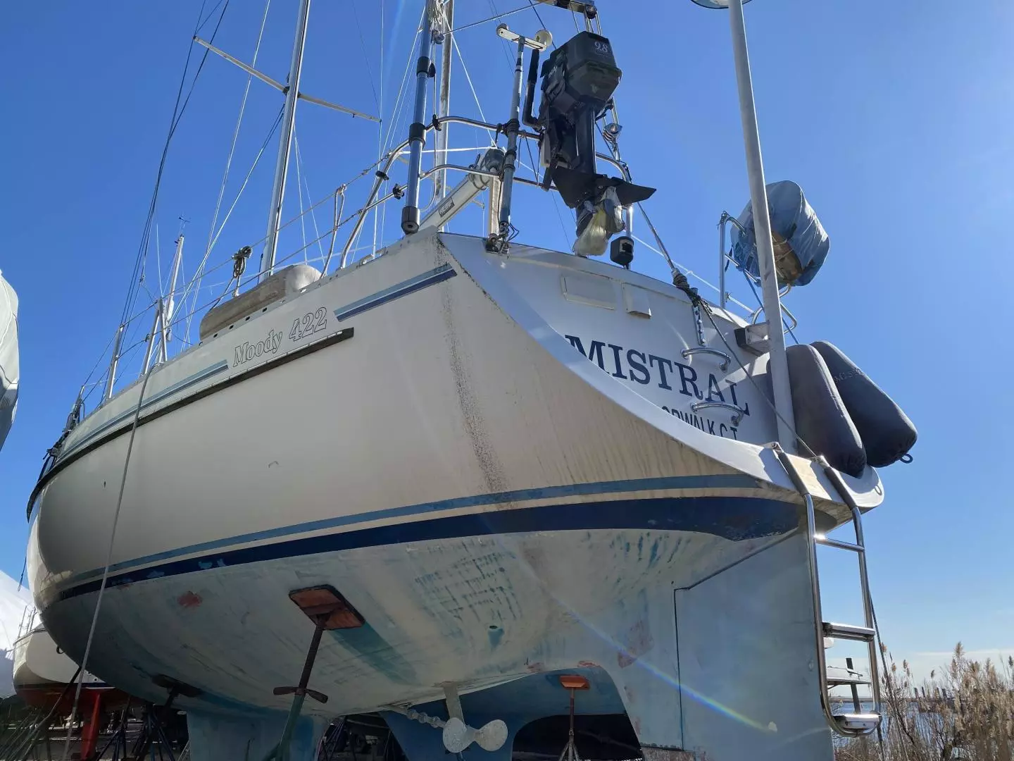 MISTRAL must be sold and all reasonable offers will be considered. This is a tremendous opportunity to own a quality yacht and make it your own. The Moody 422 center cockpit was designed to cruise comfortably--coastal or blue water. She is solidly built, stoutly rigged, and will stand up well.
