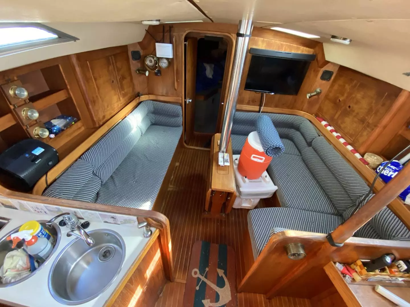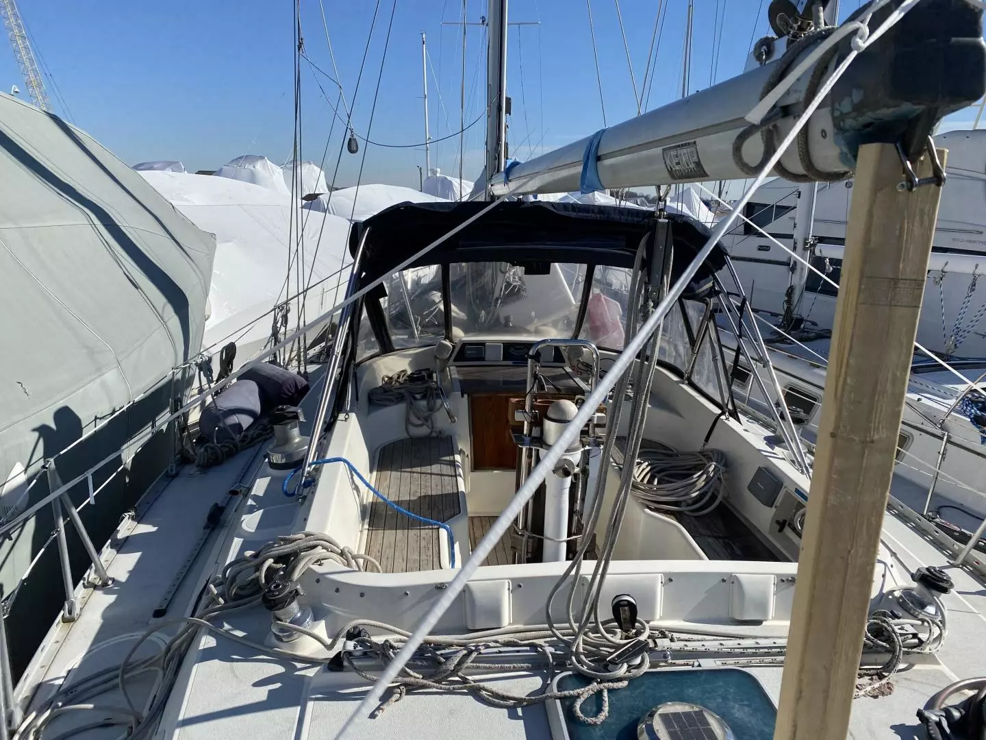- Center cockpit with teak seats and sole