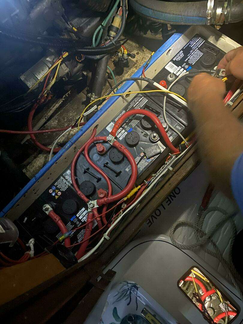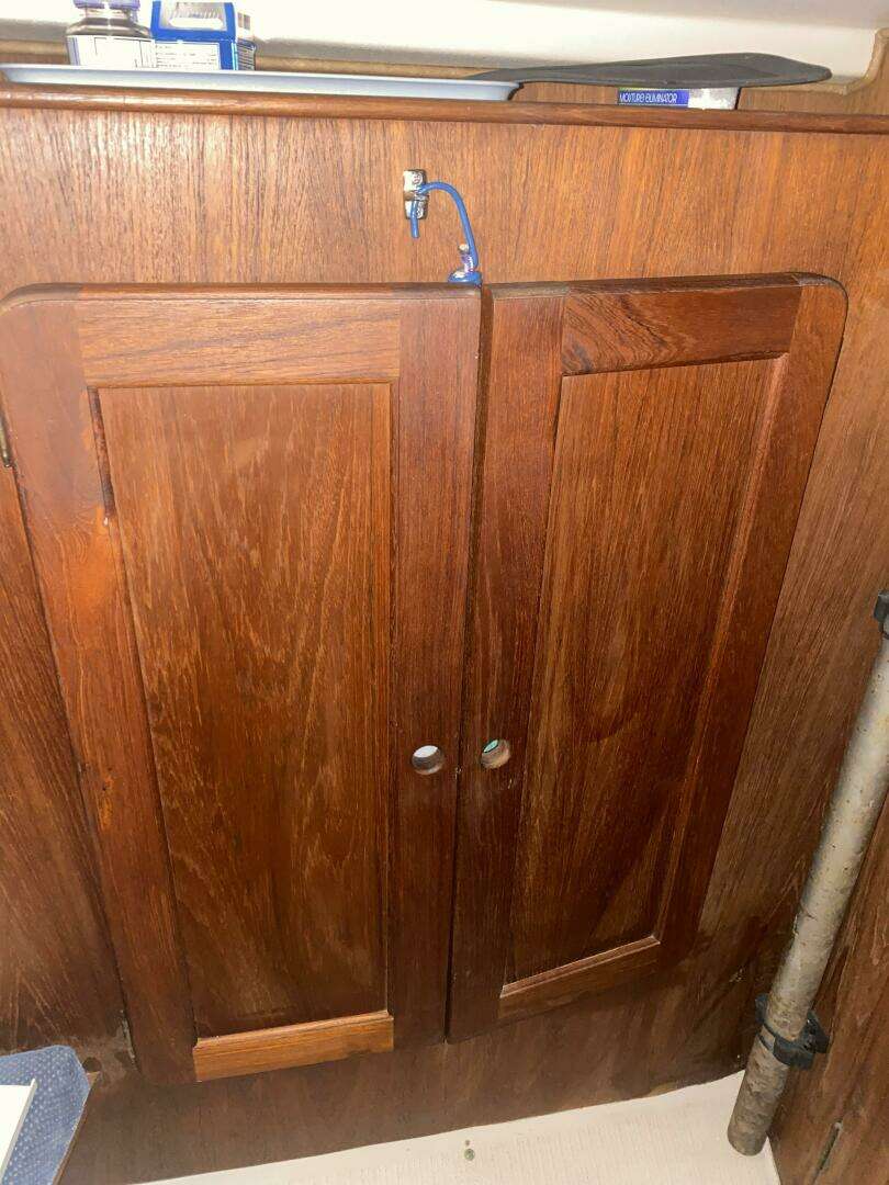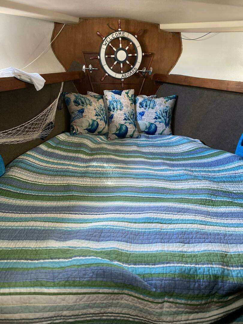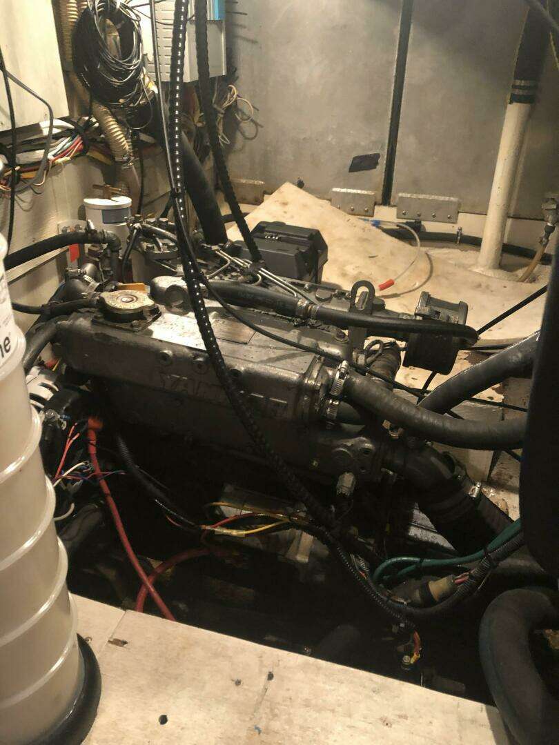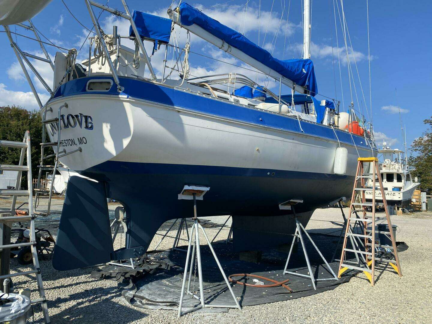 This 1987 Morgan sailing vessel “One Love” is a center cockpit sloop rigged boat with white hull and blue bottom paint. The boat has manual winches, main sail and roller furling Jib. It has a roomy below deck area including galley with propane stove and drop in refrigerator, forward and aft cabins and two heads.The vessels rigging consists of a single spreader keel stepped main mast and roller furling jib. Shrouds and stays have swedged fittings and chain plates on exterior of hull. Seating present in cockpit and below deck. Forward is a V berth cabin with separate head. The dinette is located starboard side. Aft is a master cabin, with second head.Galley port side with a propane stove and oven, double stainless sink, and drop in refrigerator/freezers. DC system consists of a main breaker panel, secondary panel Mastervolt 12-2000-100 inverter/charger. The main panel is located in the port passageway with secondary panel in engine room. System has main shutoff and branch circuits supporting air conditioners, water heater and outlets. Ac inlets are on aft deck. Compass, Garmin 7608XSV Tridata speed /depth and autopilot located at helm. Additional Garmin chart plotter and Icom IC-M802 single side band located at nav. Station below deck.