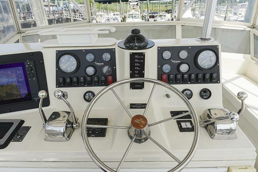 Impulse is a well maintained 1987 41' Viking designed in collaboration w Rybovich, the well respected South Florida boat builder. The current owner has been proactive when it comes to maintaining the boat. This past fall the port engine was removed and completely rebuilt. All maintenance records are available. Amenities/updates include 2 AC units, Simrad electronics (2021/2022), Achilles RIB w OB, Kohler 8KW generator, the cutlass bearings and dripless shaft seals were replaced in 2025, new dash panels...she is clean from the bilge to the flybridge. At 2000 RPMs she cruises at 17.8 knots/hr. Fuel consumption = 16 gals/hr. Currently she is on the hard in West Haven, CT. A 2025 insurance survey is available for serious inquiries.