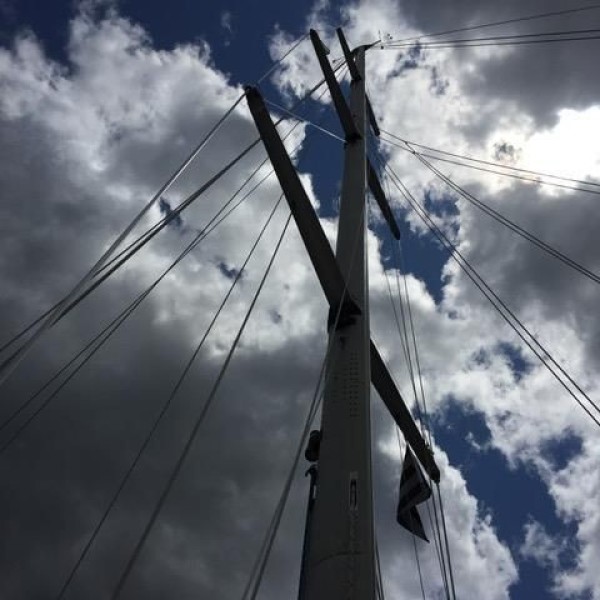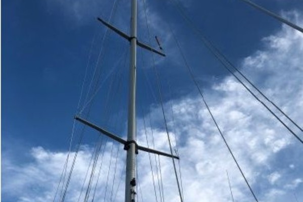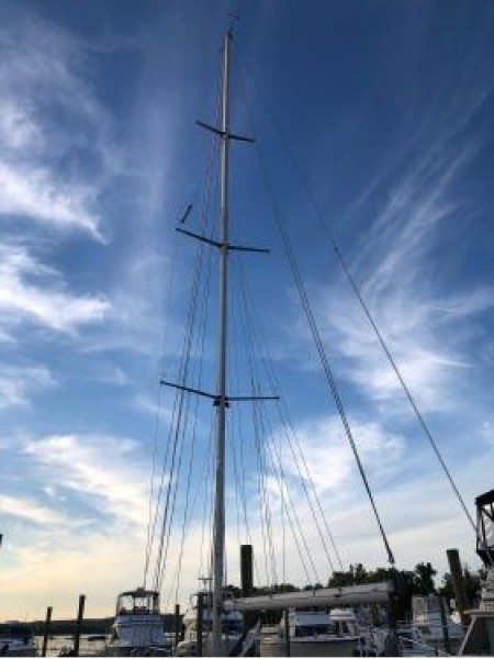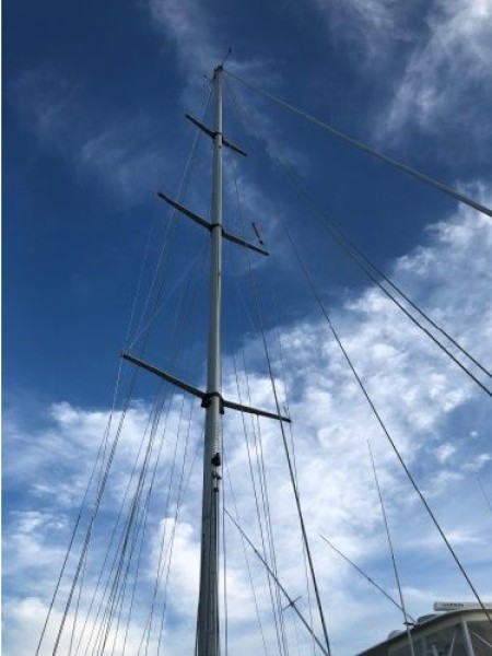 Anodized aluminum, triple spreader mast built by Kemp (Seldén)