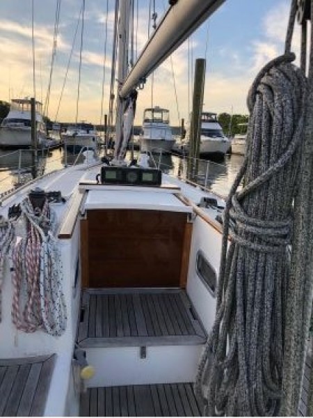 A unique combination of lovely cruising amenities and excellent performance at a very affordable price. All halyards and sheets lead aft to oversized self-tailing winches, the jib is roller furling, the cockpit is large and comfortable; characteristics which allow her to be easily sailed by a couple or single-handed. At the same time the hull, foils and rig by Ron Holland with refinements by Jim Taylor - both noted for their race boat designs - produce fast and powerful yacht which can make you the star of your local PHRF fleet. Above all else, she is gorgeous both at the dock and under sail.