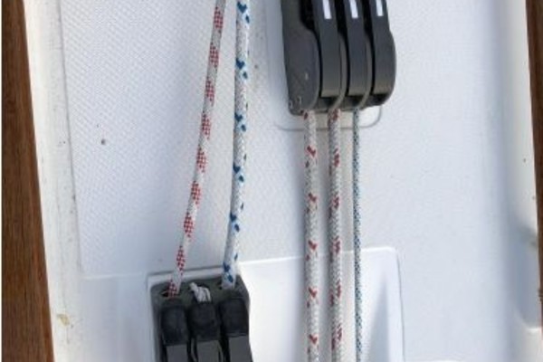 Halyards include: primary main, secondary main, port jib, starboard jib, port spinnaker, starboard spinnaker