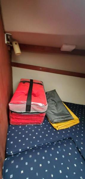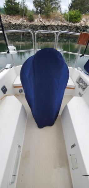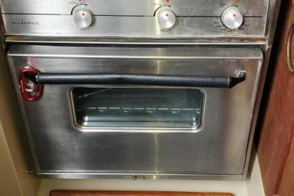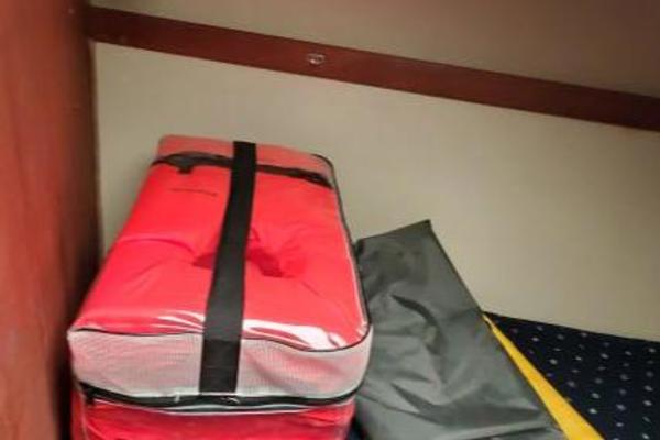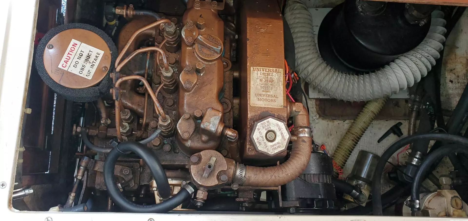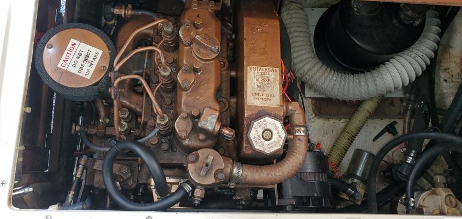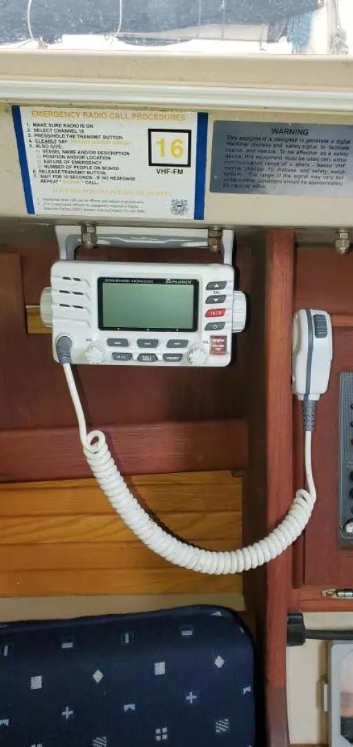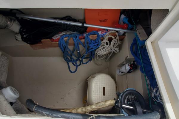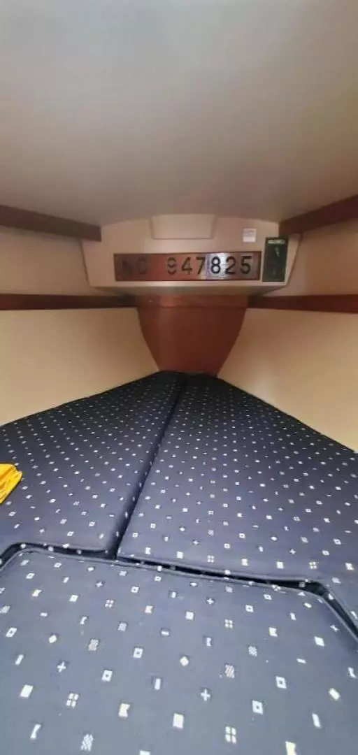 The interior is very nicely appointed, with fresh cushions and matching floor carpeting, while the interior oiled teak is clean and even shows some luster, there are negligible marks from staining.