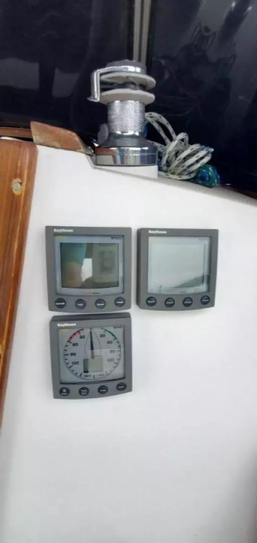 On deck one will notice some gelcoat crazing in stressed locations but these seem quite localized, however, there is evidence of moisture having entered the core in some areas and is why the boat is keenly priced. Also on deck, the dodger and bimini awning hardly seem to have any wear on them at all and the laminated mainsail and furling genoa are in very good shape.