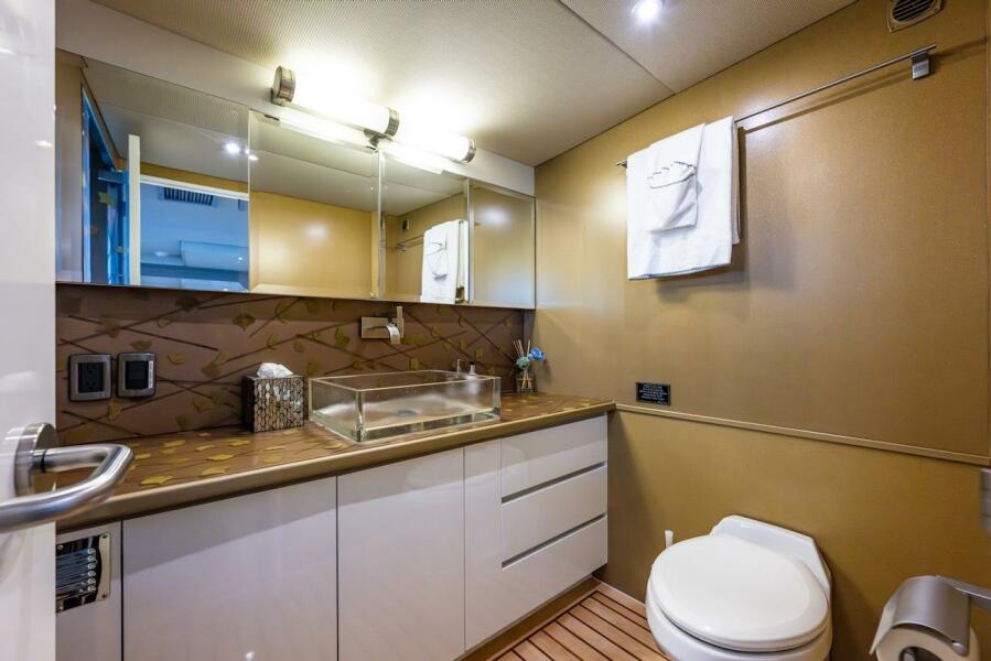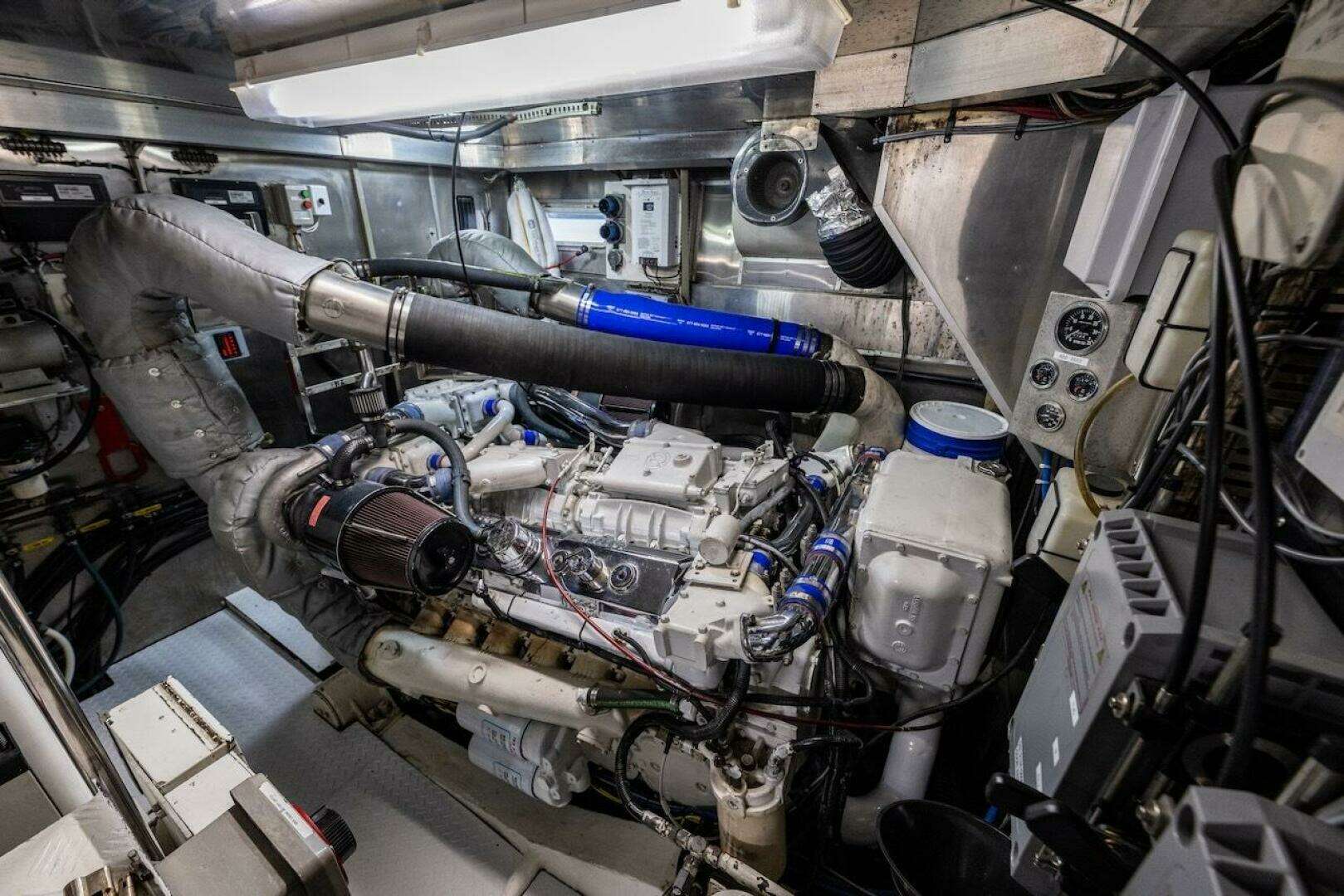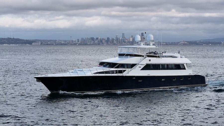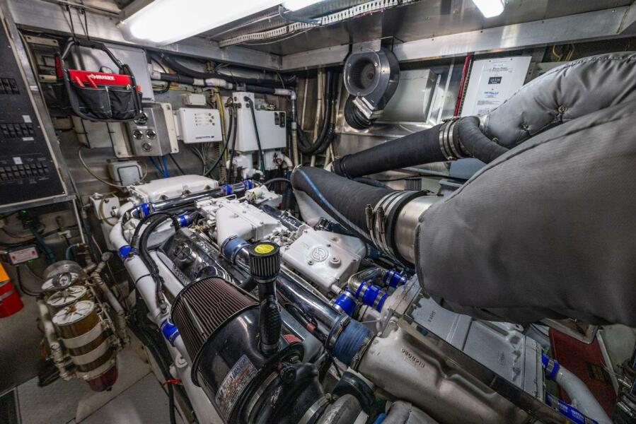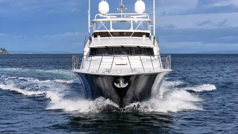 She has undergone many refits over the years, but none as thorough as an almost two-year re-fit completed in 2007. Nearly the entire interior was gutted to change the entire look and feel of the vessel. The owners added a beautiful maple floor with teak lines throughout; all-new upholstery in each cabin and salon; Added a swim platform, lengthened the flybridge deck to carry more toys which created a roof to the California deck; Upgraded to a 2,500 lb crane (with structural reinforcements); upgraded the galley; added a glass and stainless steel door into the salon; added watermakers; lowered the floor in the master and raised the ceiling to make it much more comfortable; all new surfaces in all the heads; and much more