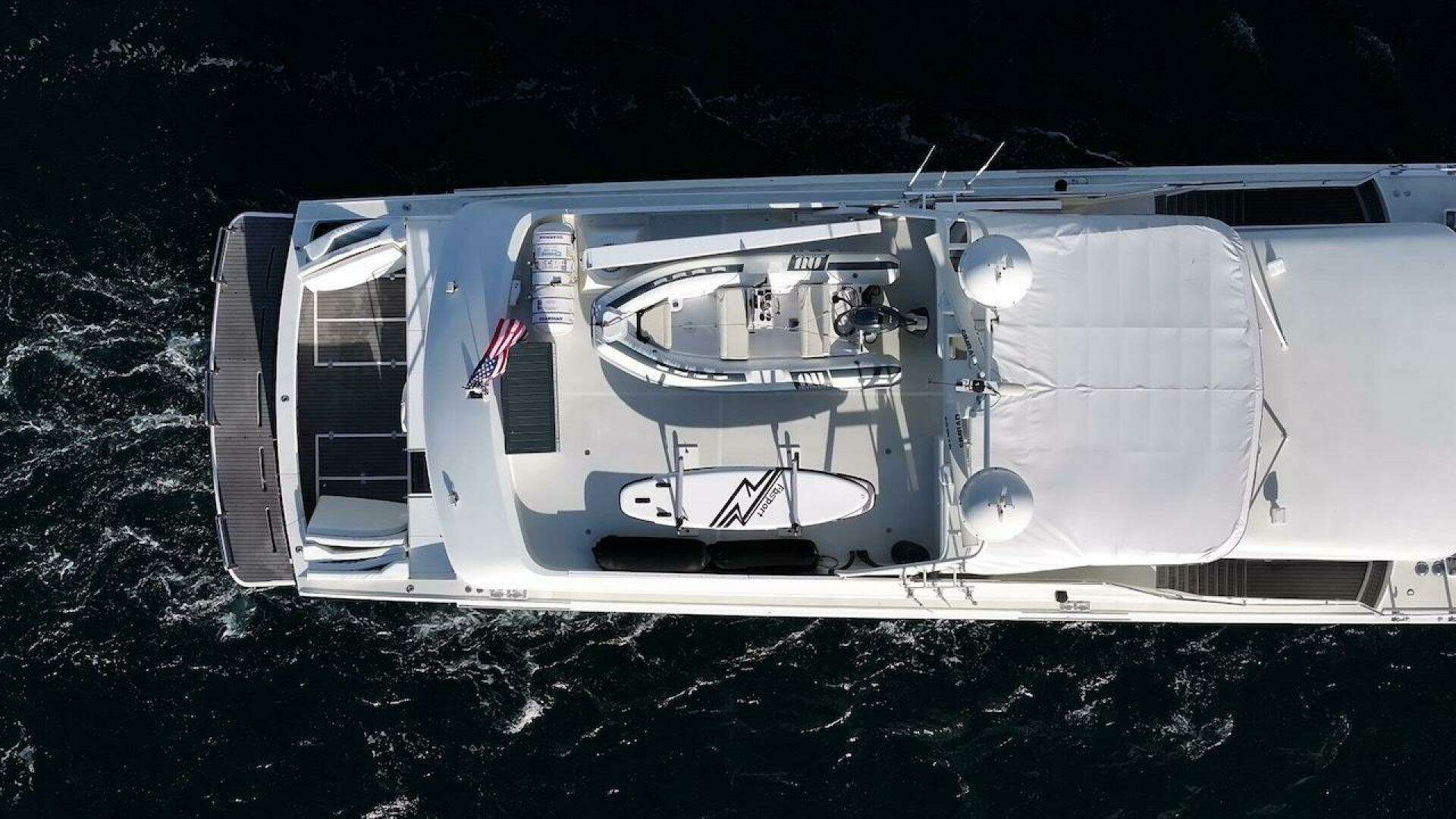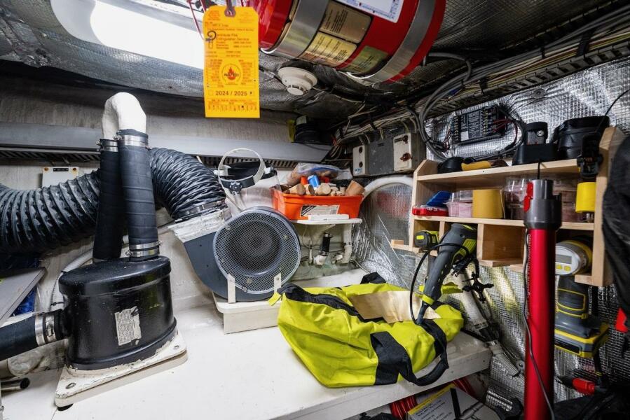 - Life Rafts - Survivetec Group 16-person raft with hydrostatic release, stored in case on port aft corner of flybridge. (Certified through April 2026)