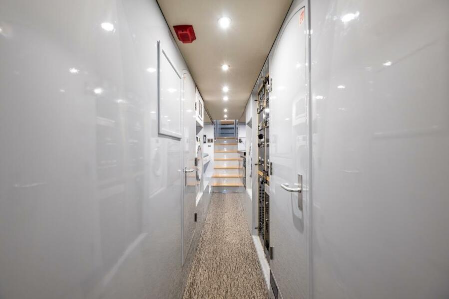 First Home is a highly modernized and refit 92 foot Cheoy Lee of the classic Tom Fexas design. She offers sleeping accommodations for eight in four cabins along with crew berths for four crew, 5 ensuite guest heads, a crew head and a day head. Her layout includes a large cockpit that is great for fishing or entertaining, a fully enclosable California deck that is a covered outdoor/indoor space with air conditioning and heating, a bar, and a large table. Passing through glass and stainless-steel sliding doors and you enter a vast salon with a bar, table, very large settee, and a grand ottoman that hides a large TV. The galley is set up as a commercial workspace, with new appliances and a versatile layout that both amateur and professional chefs would appreciate. Also wonderful is how each of the sleeping areas are separate from the other, with the full-beam primary cabin aft, the full-beam VIP quarters forward past the pilothouse, and the two guest cabins each with two twin berths midship. Everyone gets their own space.
