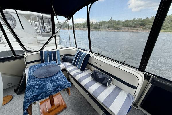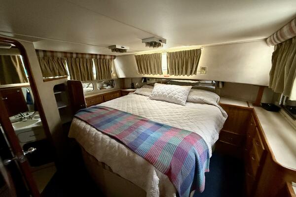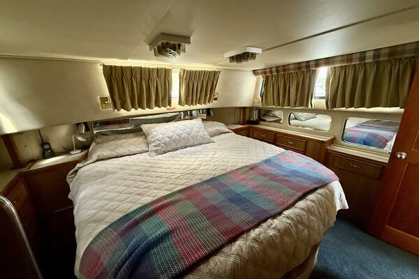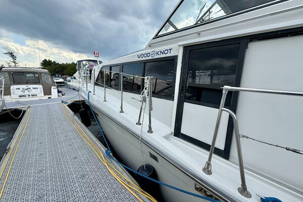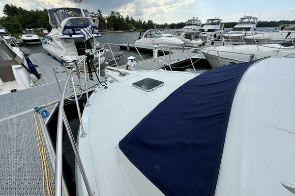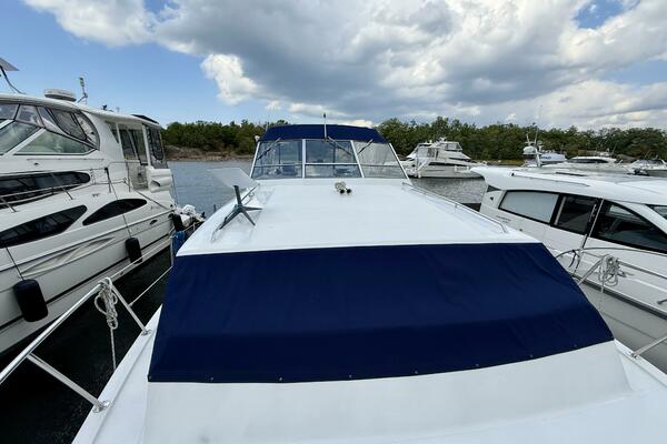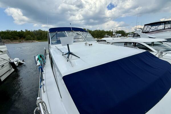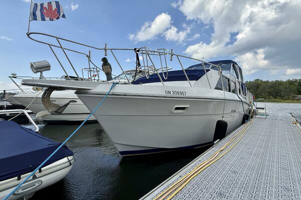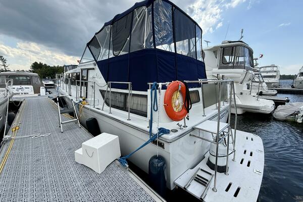 The Chris-Craft 381 Catalina is well built motor yacht, with a fantastic layout for cruising or living aboard. This example has been well-maintained and upgraded over the years, truly showing the pride in ownership. An extended swim platform with custom stairs leads to a great cockpit with a new full canvas enclosure and fridge. Down below you have a spacious salon with a built-in bar. The forward cabin features an en-suite head, while the aft boasts a full king walkaround, plenty of storage, and an en-suite head with a separate shower + tub.
