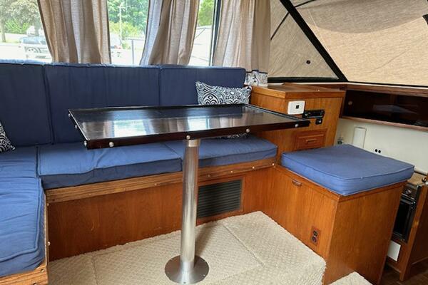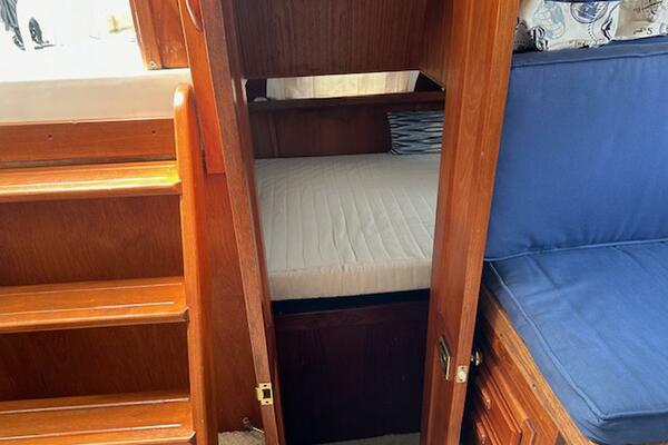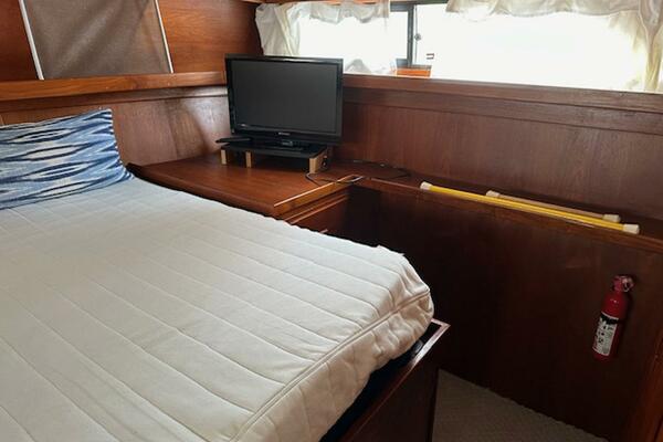 Sleeps 6 in 2 staterooms and on dinette. The roomy salon offers a very open and airy entertaining center with lower helm station. Master stateroom is aft with queen berth, full-sized closet, and storage to starboard. The forward stateroom offers an offset double berth, and hanging locker.
