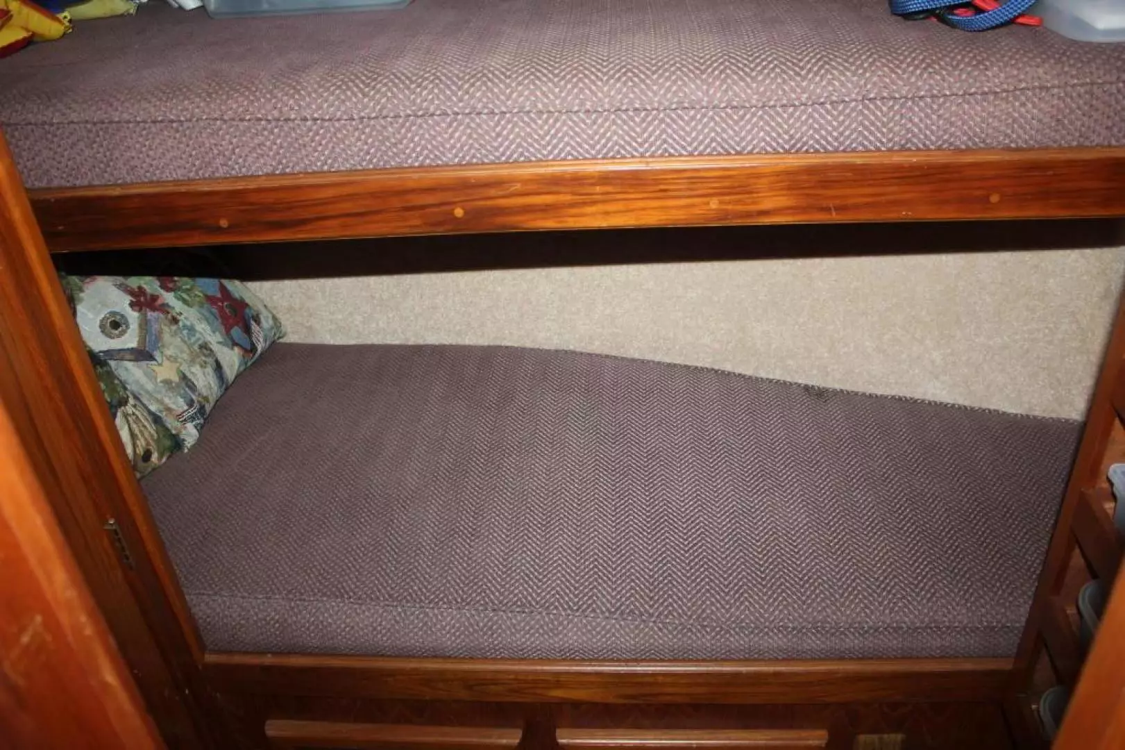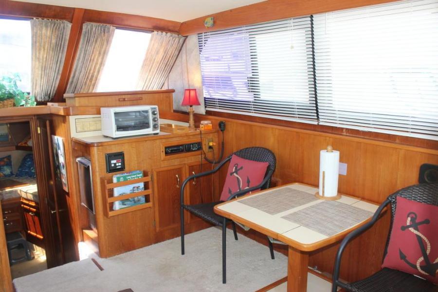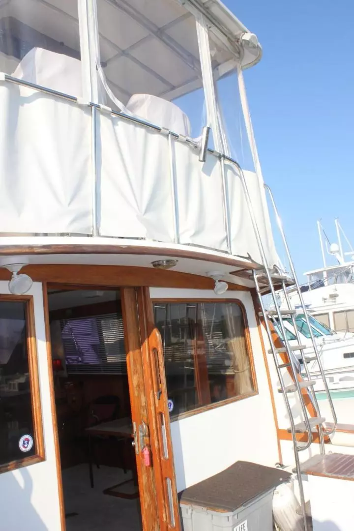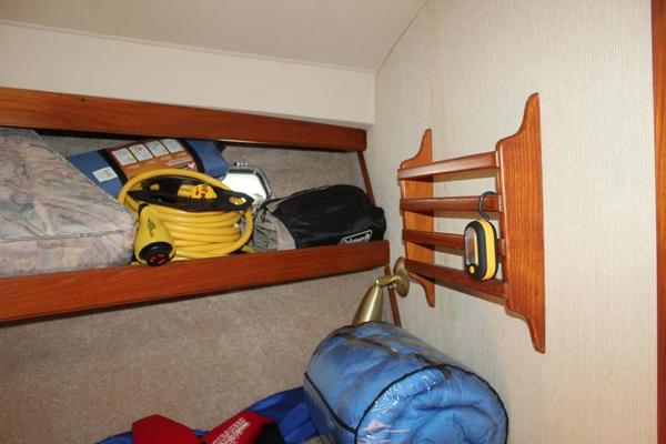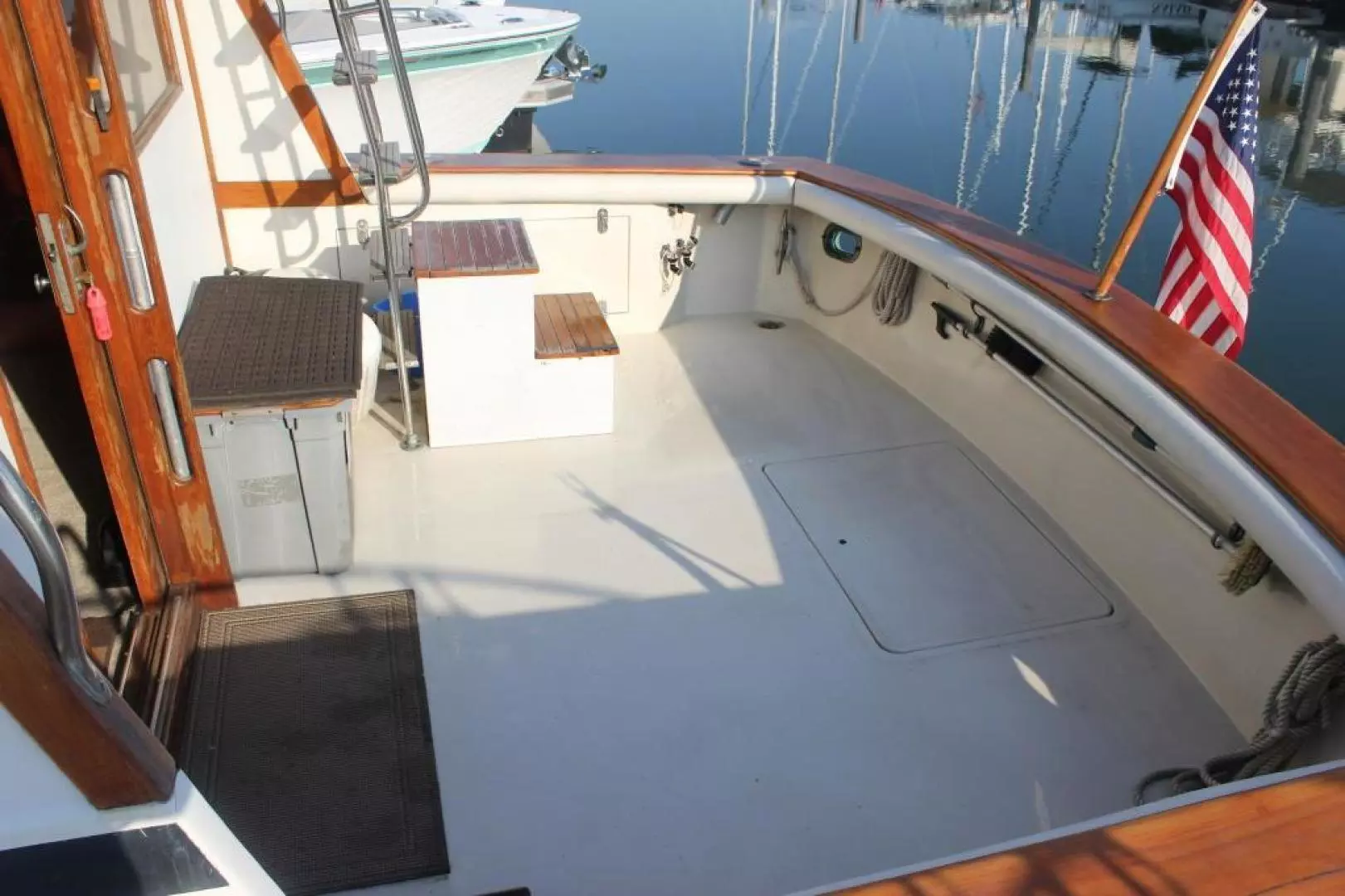 Wanderer is the popular two-stateroom model with the galley in the salon. Many say she has striking good looks. Her interior teak is nicely done and she is a very fishable boat with a large cockpit and good fore and aft sightlines from the flybridge. She has an Onan Genset with low hours and is powered by T-350 HP Mercruiser 454s with 1000 hours. She is located in Southold NY.