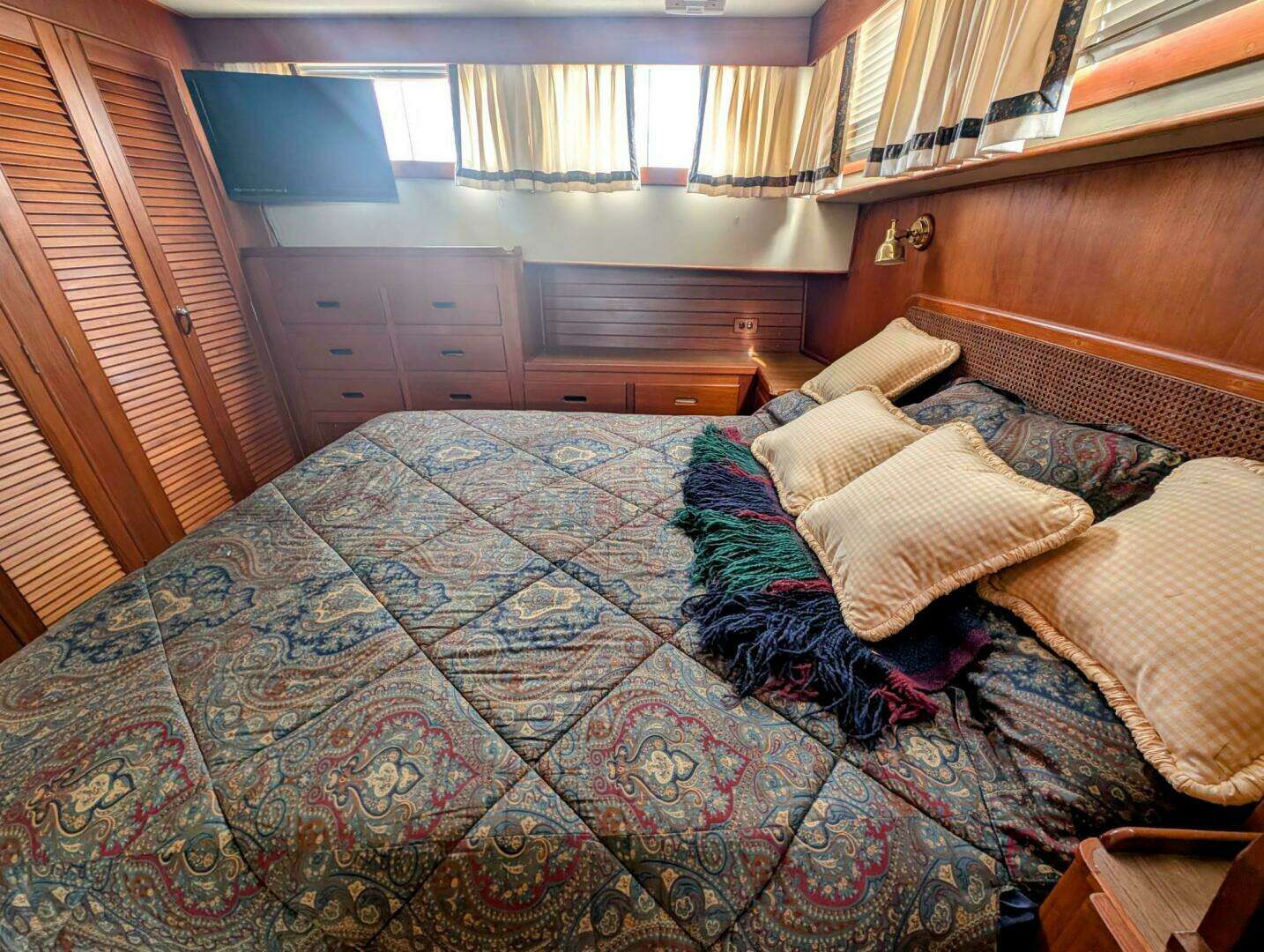- Aft Master Stateroom: The spacious owner's cabin is aft, often featuring a walk-around queen-sized bed, ample storage, a private head (often a split head and shower arrangement), and direct access to the aft cockpit.