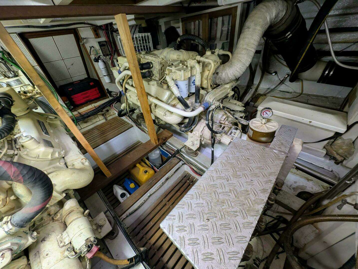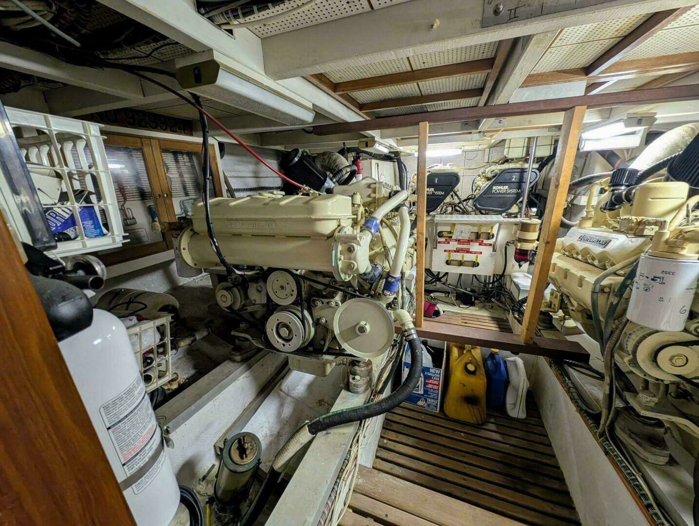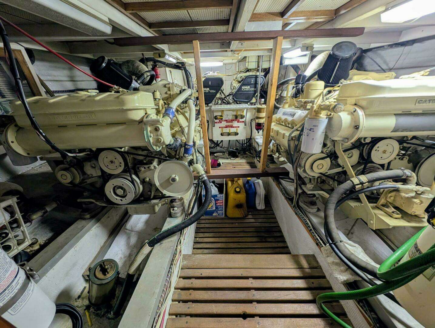 The large engine room has over five feet of headroom. Twin Cat