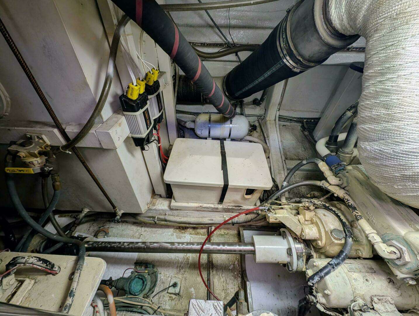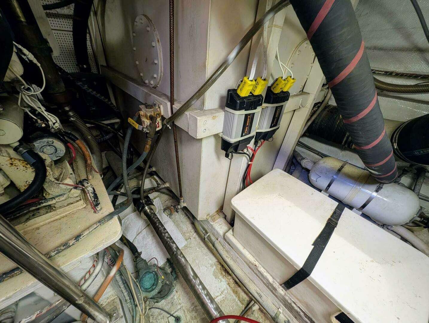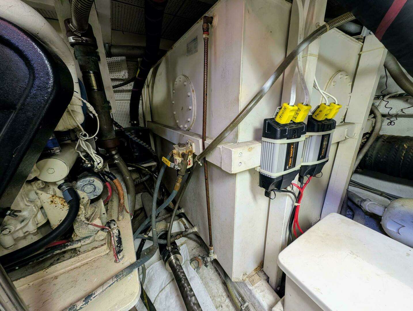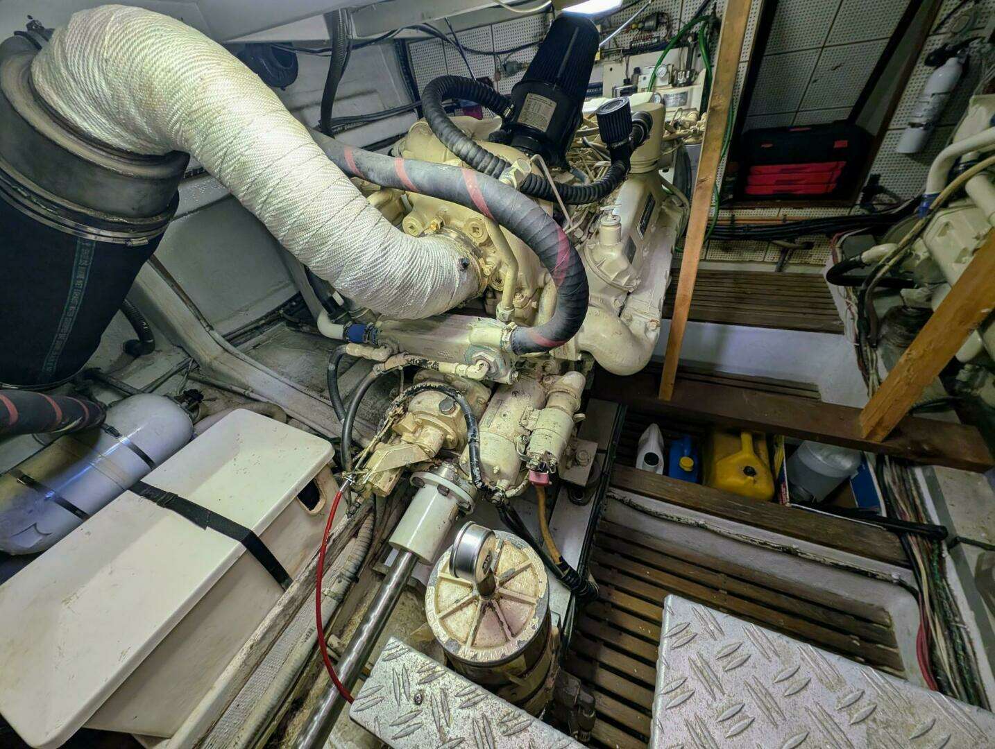 The large engine room has over five feet of headroom. Twin Cat