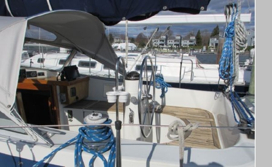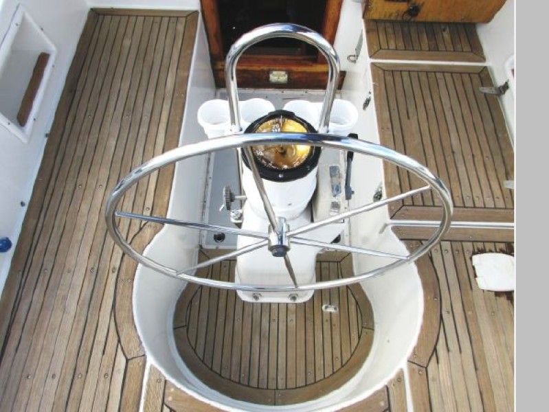 The cockpit area has the standard original Hallberg-Rassy teak overlay, 12mm (about 1/2") thickness.