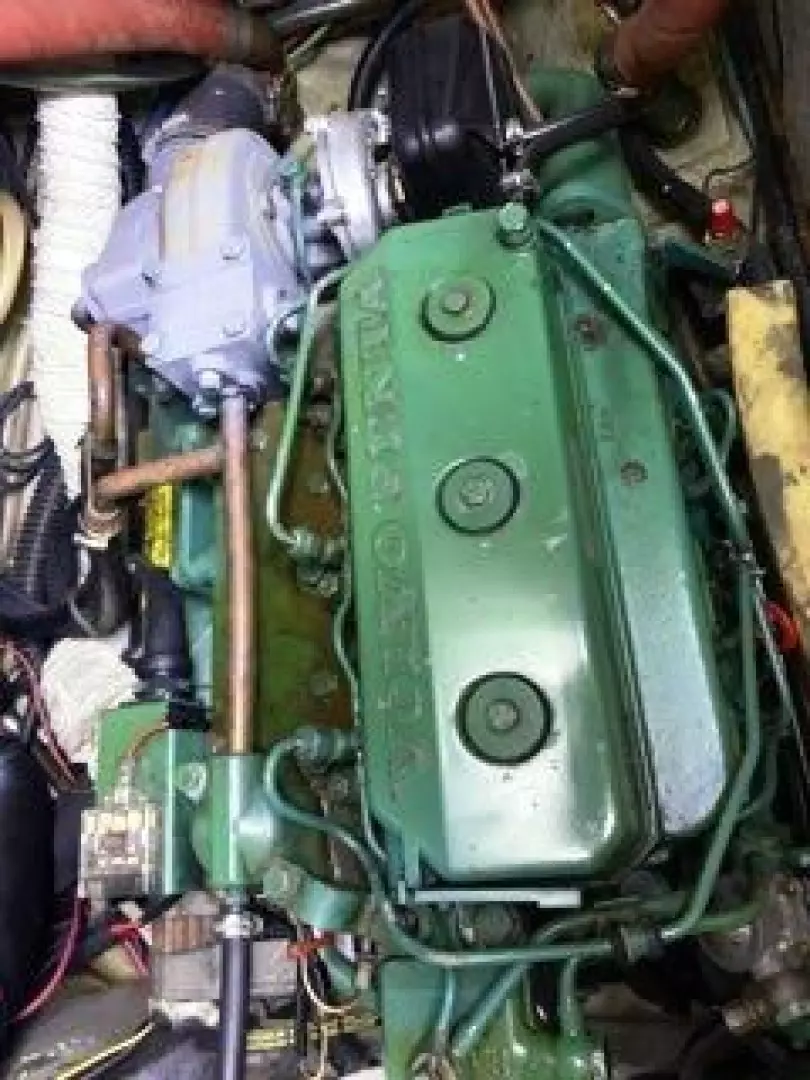 The Hallberg-Rassy 352 is powered by a VOLVO-PENTA MD 2003T Turbo (3) cylinder fresh-water cooled marine diesel that is rated at 43 HP at 3,200 RPM's.Engine access provided through secure-bolted cockpit hatch (for possible removal) & side panels aft