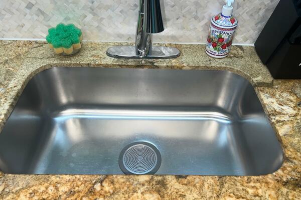 - Custom sink with gold faucet