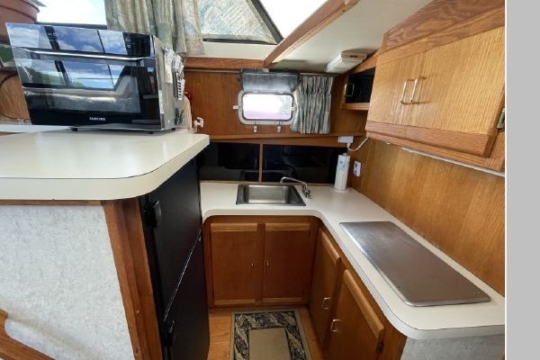 "SUN SWEPT" is a good looking 36 DC! This boat has been kept in fresh water since 2018 and is in amazing shape. Twin 5.7L Crusaders engines that are fresh water cooled with Borg Warner transmission and only 462hrs. Both engines have been replaced (P:2012, S:2011) Built in Kohler generator with only 687 hours. Garmin 740 GPS/Plotter and Radar. Canvas zippers replaced in 2019. Spacious cabin with heat/AC. Microwave and dual stove cooktop. "SUN SWEPT" is MUST-SEE 36 Mainship DC is the perfect boat if you are looking for live aboard or want to spend long weekends away from homeport!