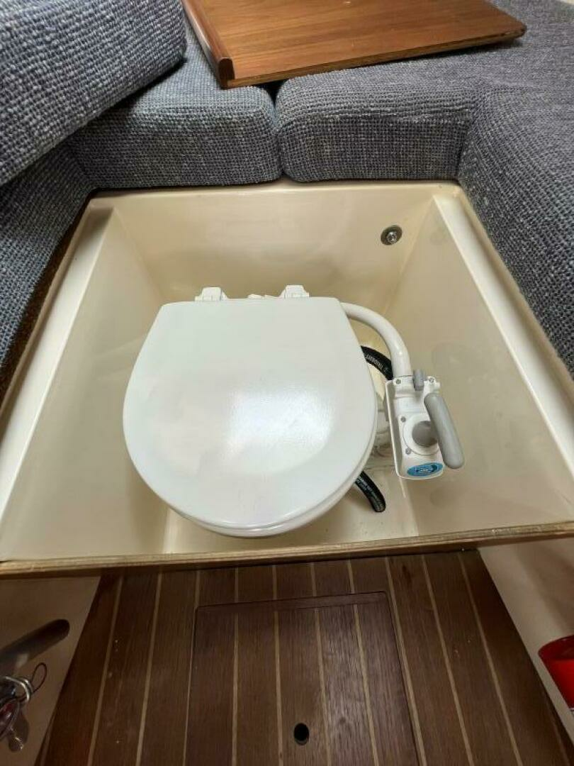 - Centerline Jabsco Head equipped w/ both Macerator Overboard Discharge and Dockside Deck Pump Out