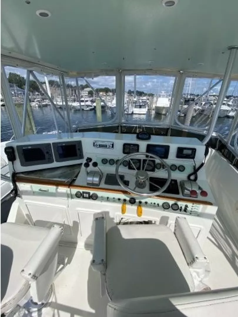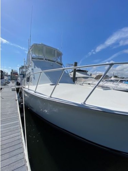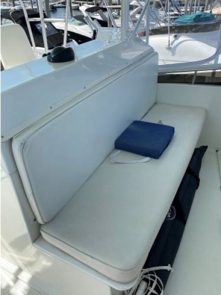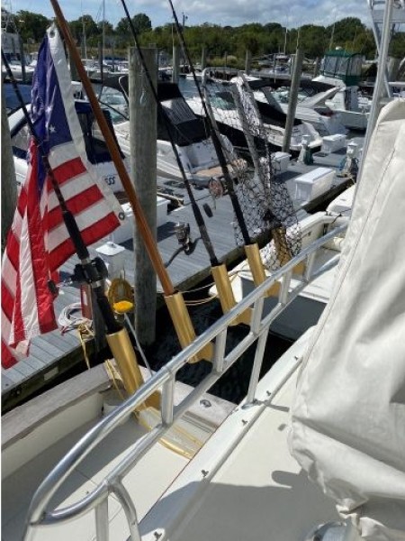 JOINT CUSTODY is a well-maintained 1988 PACE Sportfish with numerous upgrades and custom alterations. Built on the Egg Harbor molds, the 40' PACE is well-built and elegantly appointed for classic appeal. Powered by twin 3208 CATs and offering easy maneuverability with a new bow thruster, handling and driving are a pleasure. Starboard engine rebuilt in 2021 and major tuning on the Port engine so both run like new. Outriggers, deck sink, live well, tackle storage, washdowns and rod holders are ready for the anglers. New flybridge canvas, carpet, and outside refrigerator. Extras include solid fiberglass toe rail, aluminum railings and double electronics.