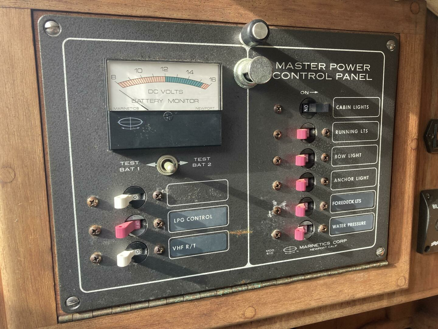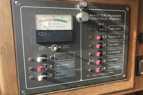 Circuit breaker panel located to port of companionway.