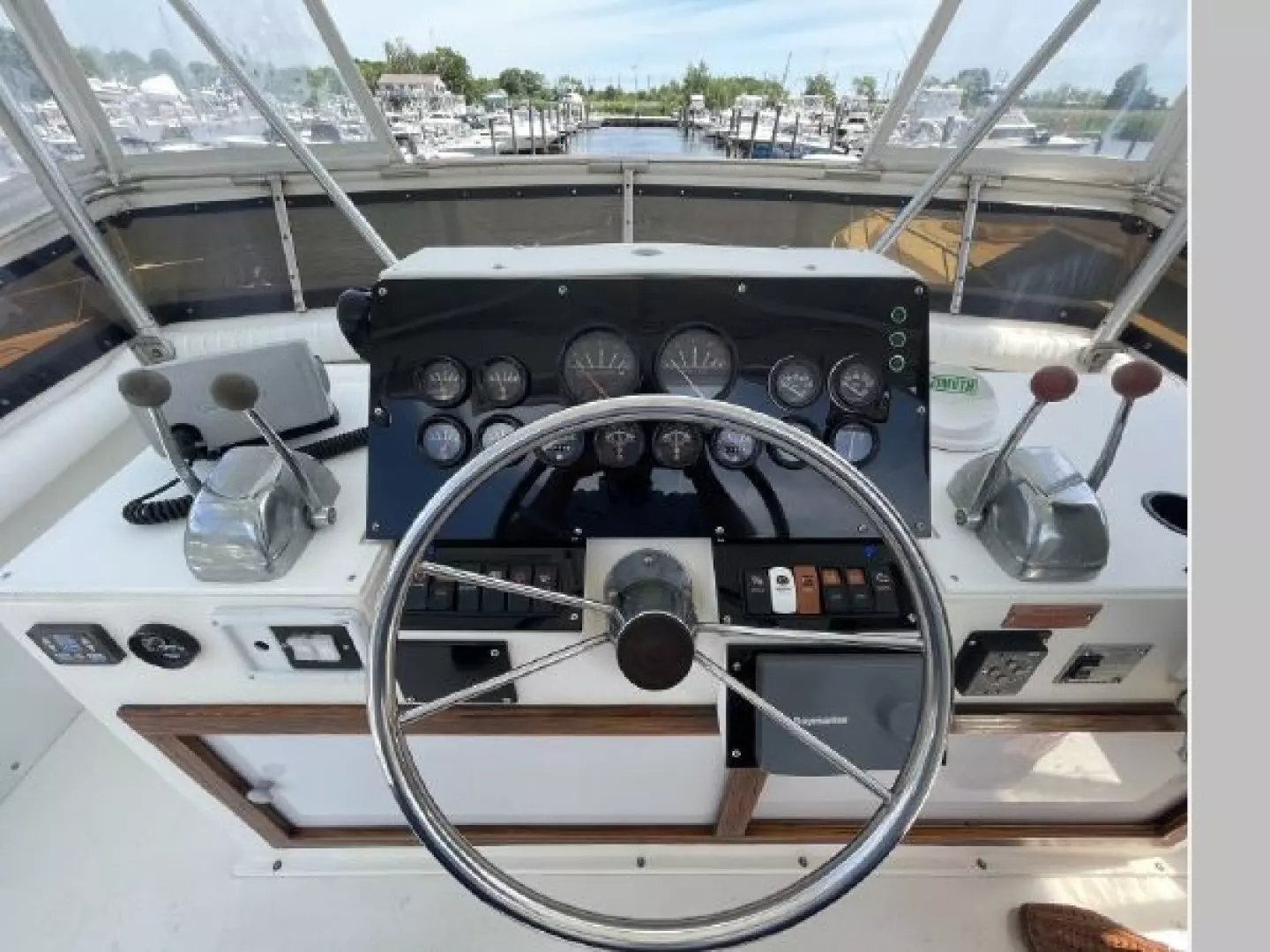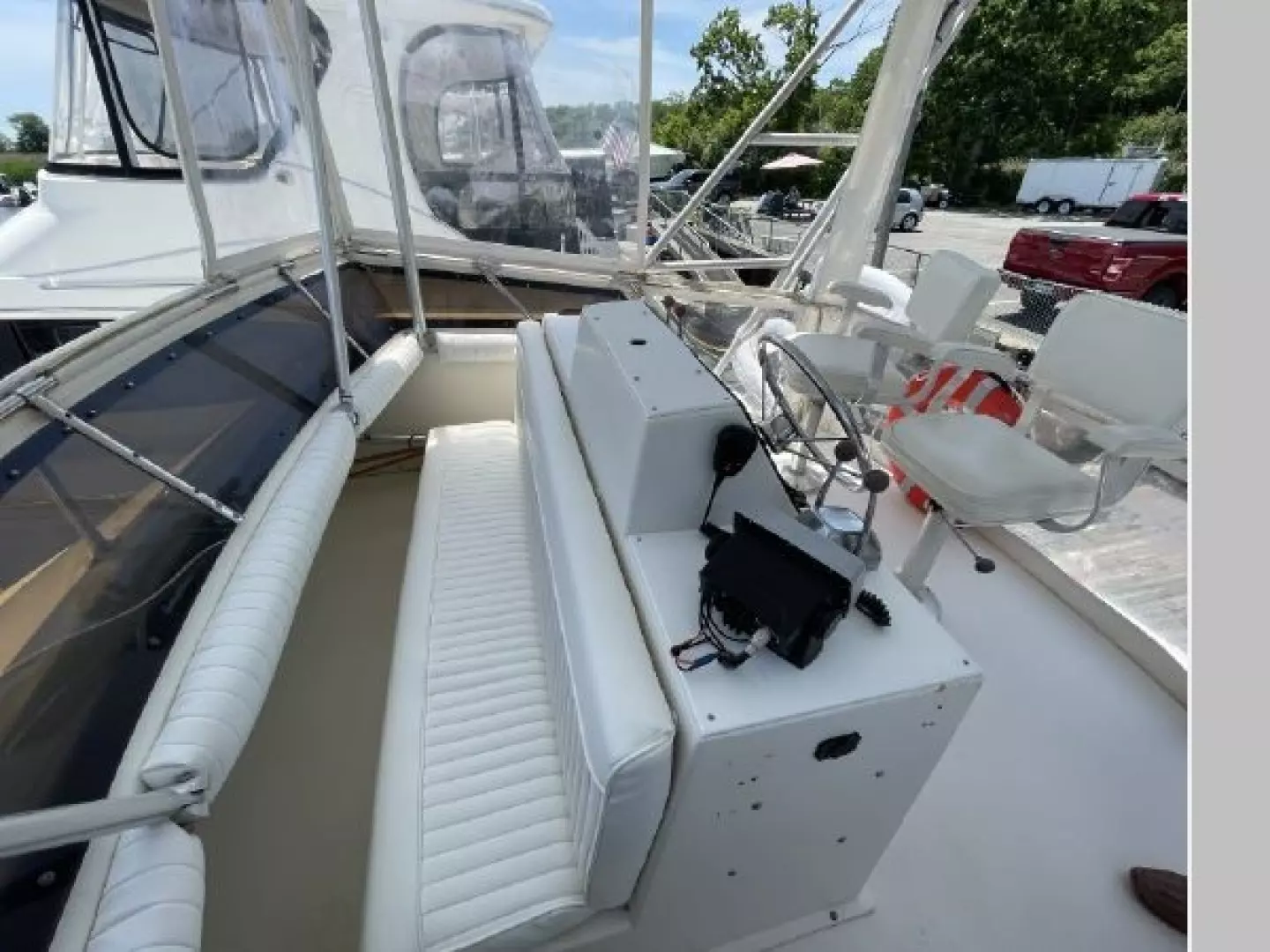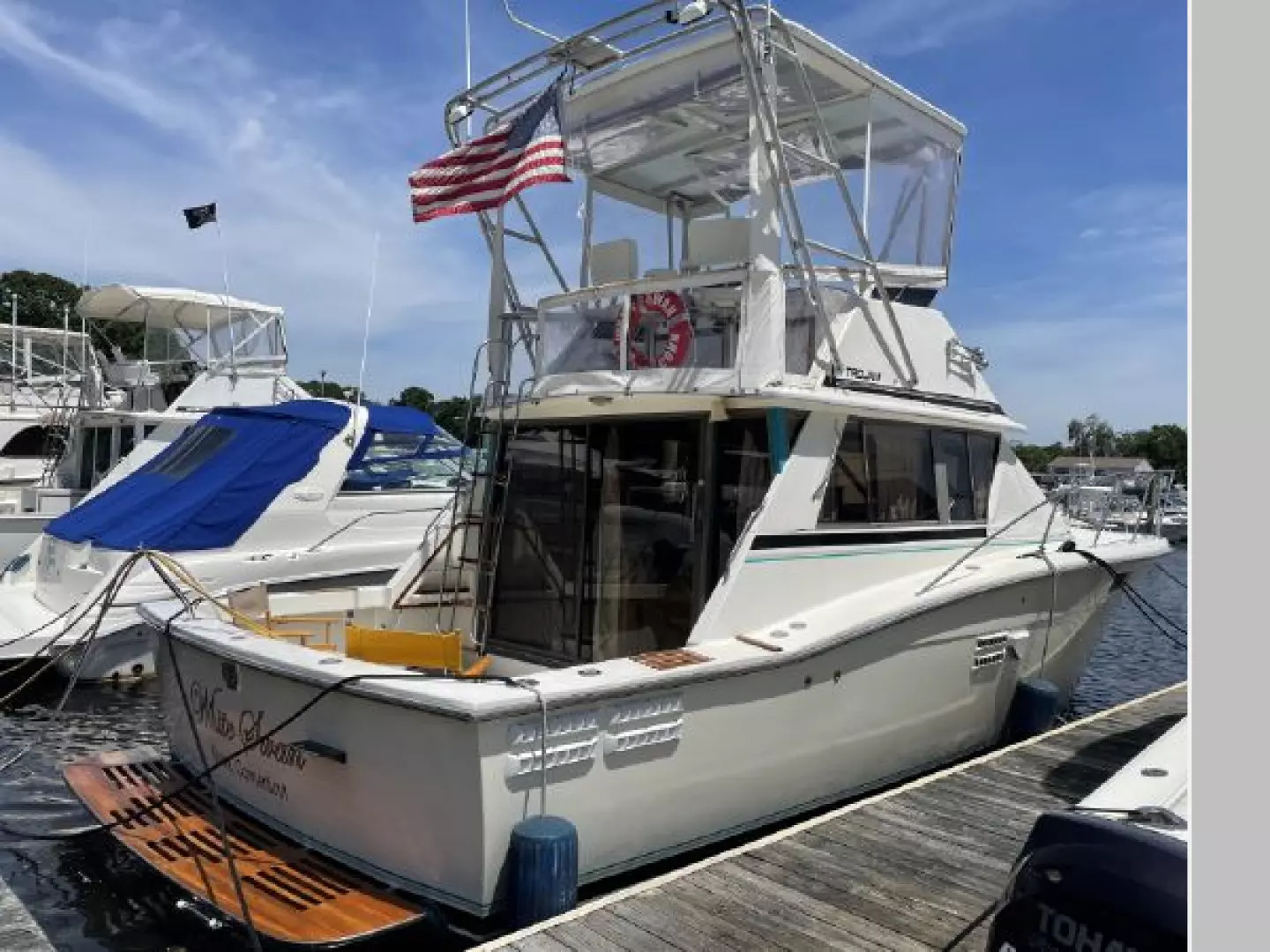 "WHITE SWAN" is a beautiful, super clean F36 Trojan that has it all! This boat has been kept in amazing shape. Twin 454 Crusaders engines that are freshwater cooled with Borg Werner drives and only 742hrs. Newer 6.5kw Kohler generator. Canvas replaced in (2017) Built in bow cushions to bask in the sun on a hot summer day. Spacious cabin with heat/AC. Microwave and dual stove cooktop. There has been many updates to this beautiful Trojan. "WHITE SWAN" is MUST-SEE F36 Trojan that has all the classic lines of sportfish.