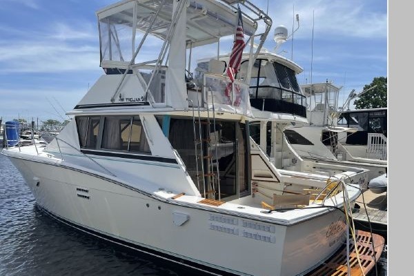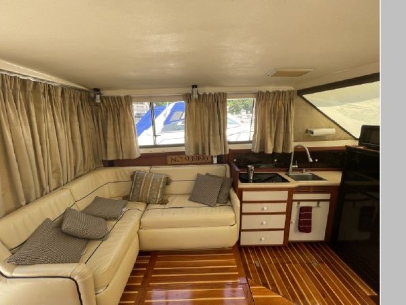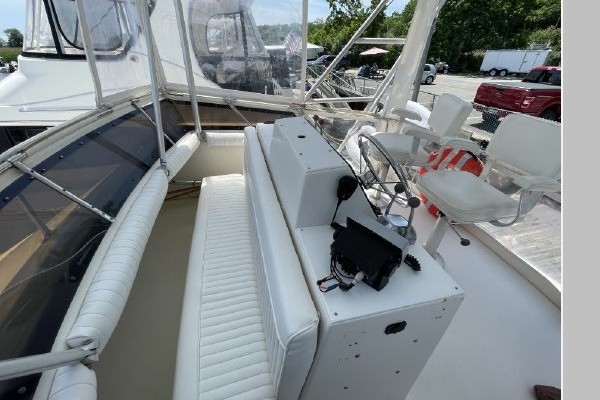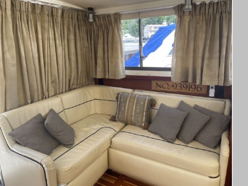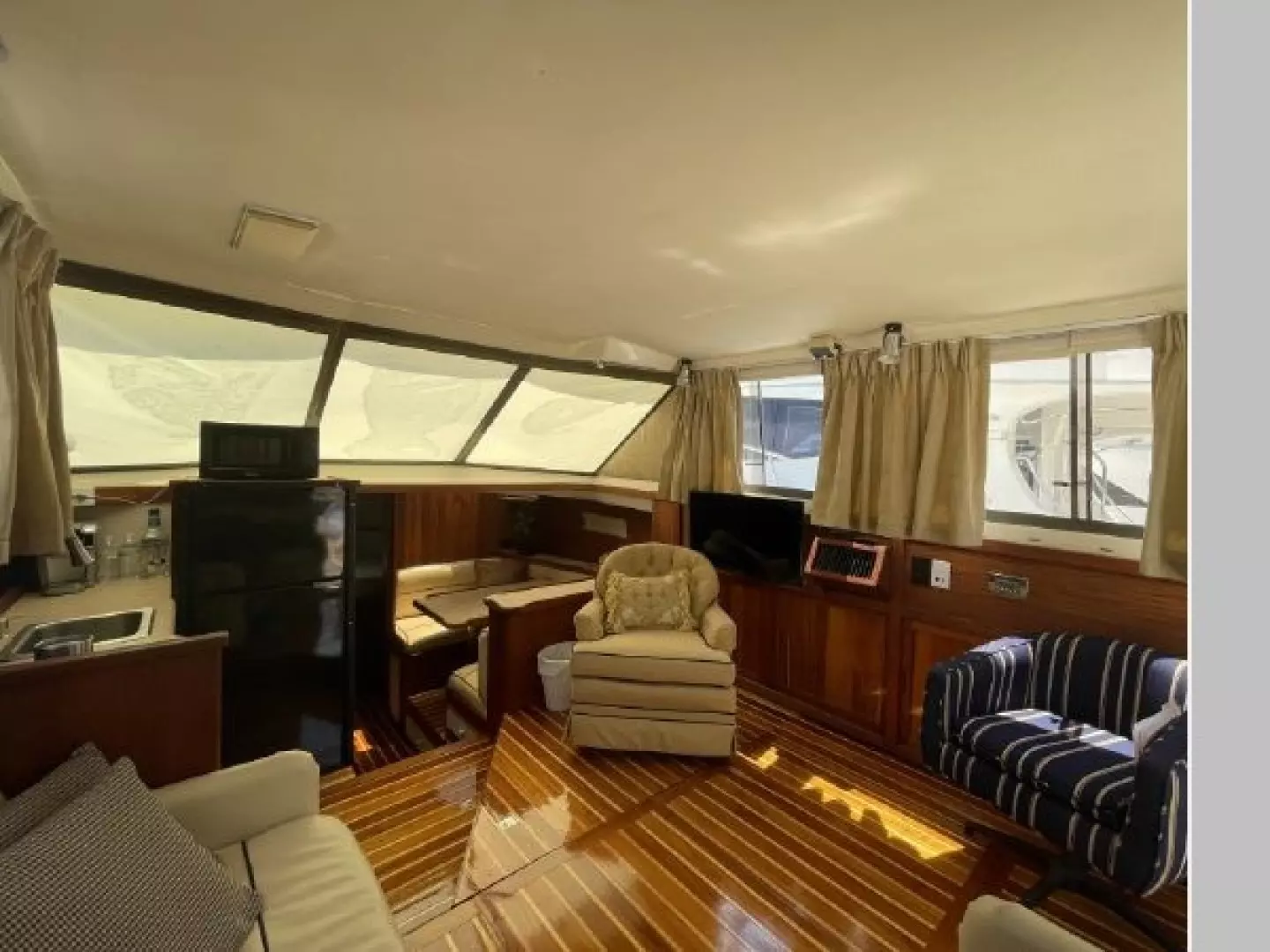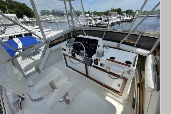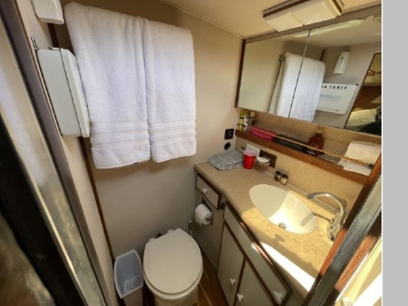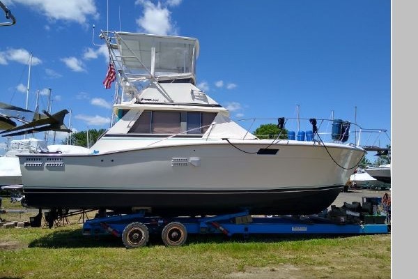 "WHITE SWAN" is a beautiful, super clean F36 Trojan that has it all! This boat has been kept in amazing shape. Twin 454 Crusaders engines that are freshwater cooled with Borg Werner drives and only 742hrs. Newer 6.5kw Kohler generator. Canvas replaced in (2017) Built in bow cushions to bask in the sun on a hot summer day. Spacious cabin with heat/AC. Microwave and dual stove cooktop. There has been many updates to this beautiful Trojan. "WHITE SWAN" is MUST-SEE F36 Trojan that has all the classic lines of sportfish.