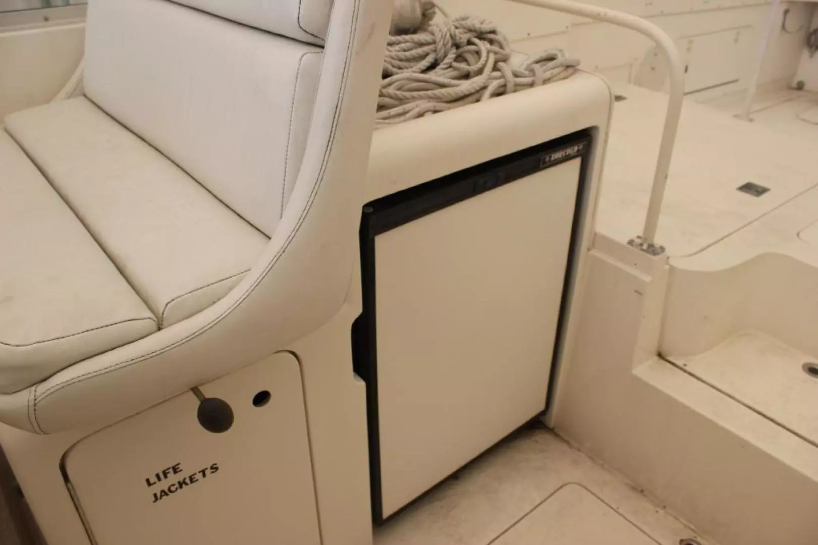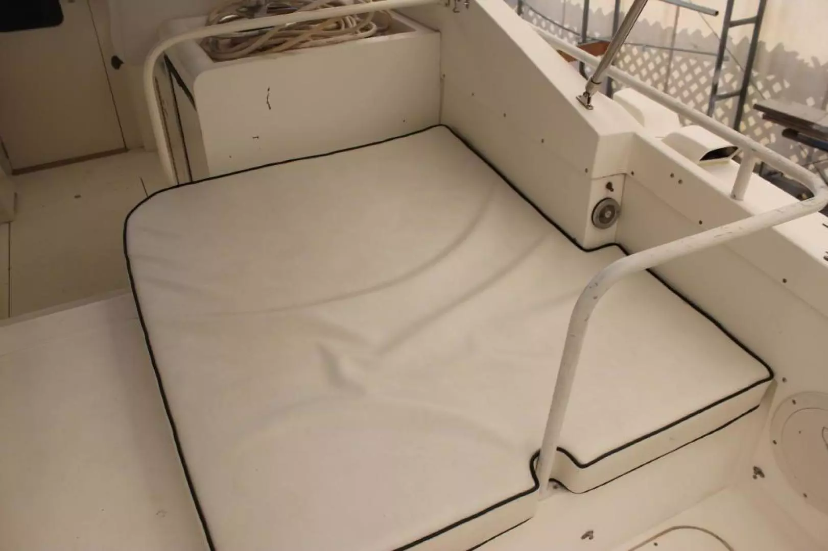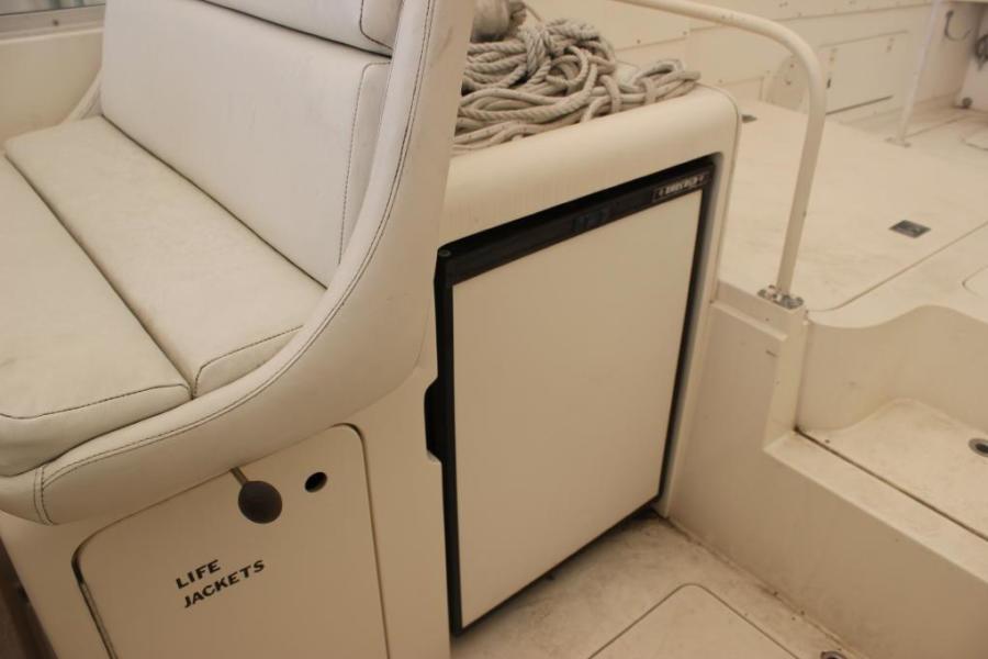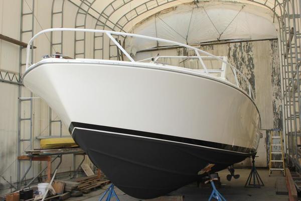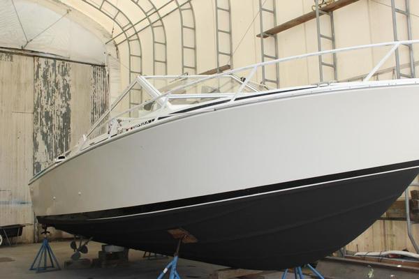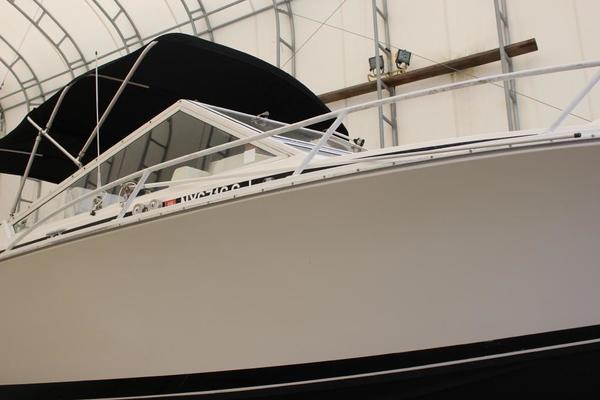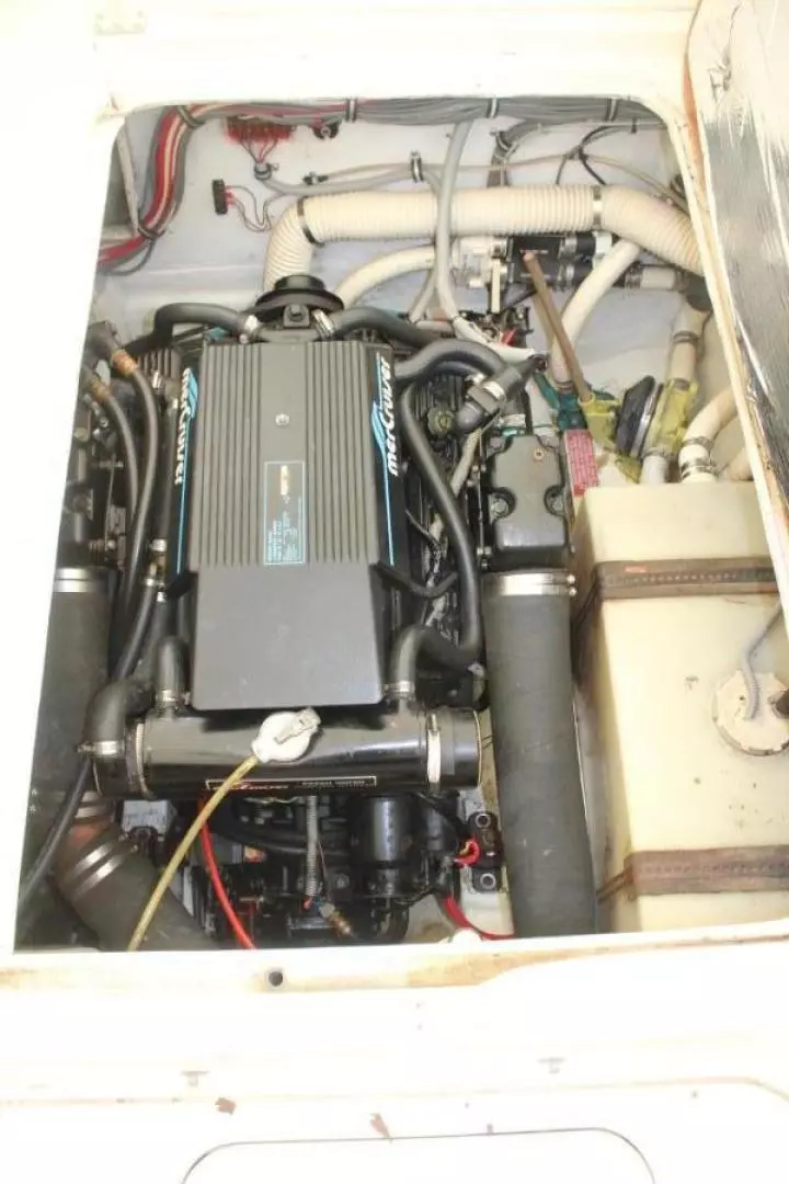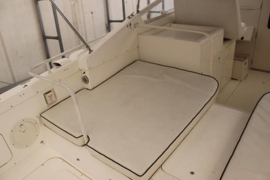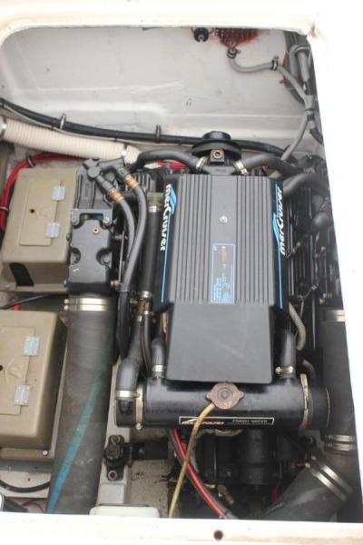 The last in a series of Bertram 28-footers, the 28 Moppie is a well-styled inboard runabout with the quality engineering and rugged construction one expects in a Bertram product. She’s built on a beamy, solid fiberglass deep-V hull with a steep 23 degrees of transom deadrise. Aside from her superb handling characteristics, the Moppie’s primary attraction remains her expansive and versatile bi-level cockpit layout. The lower level has plenty of room for a fighting chair, and the low freeboard adds significantly to her fishability. In an unusual design twist, the Moppie’s galley is on deck, concealed in molded lockers abaft the helm and companion seats. Twin hatches in the bridge deck sole provide excellent service access to the engines. Belowdecks, the compact cuddy cabin includes a head with a foldaway cover, sink, and V-berth. Additional features include a vented windshield, a painted bow rail and windshield, and teak interior trim. She is powered by T-260 HP Mercruisers. Call for an appointment to see her. She is located in Greenport NY.