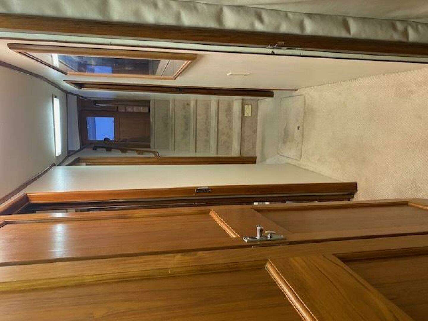 Teak and Holly sole in galley / Carpeted floor