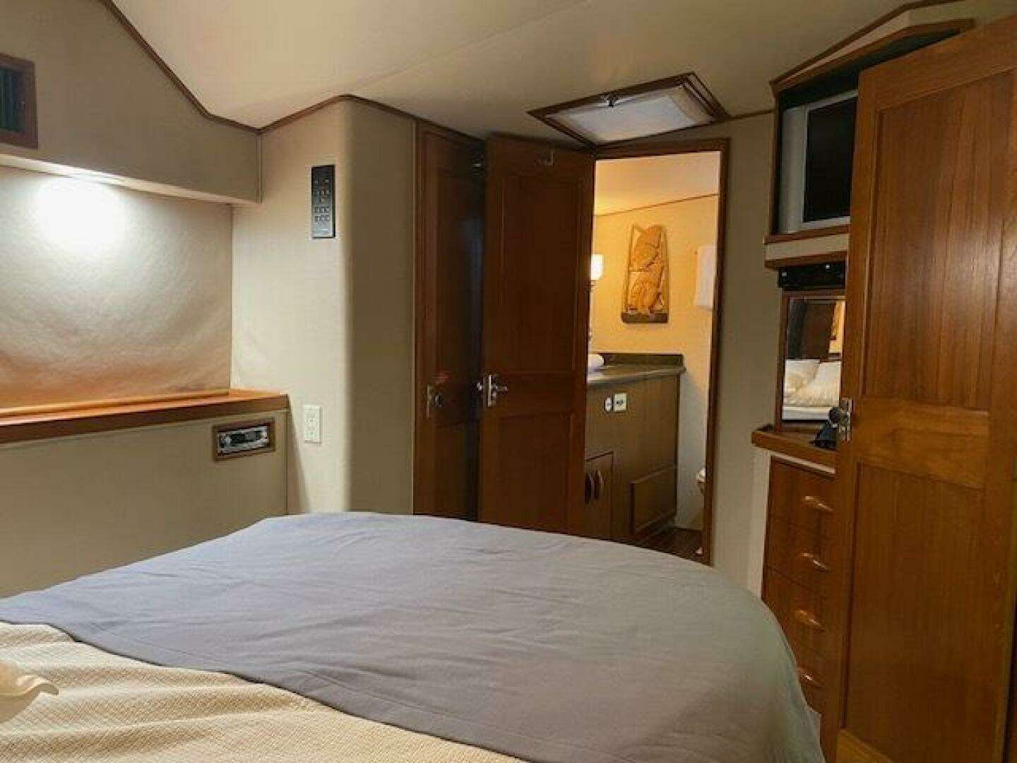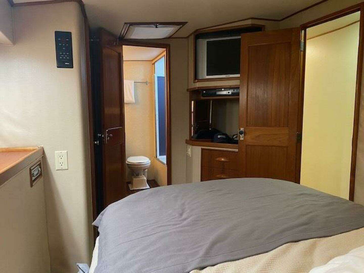 Large guest stateroom to port at the foot of the companionway