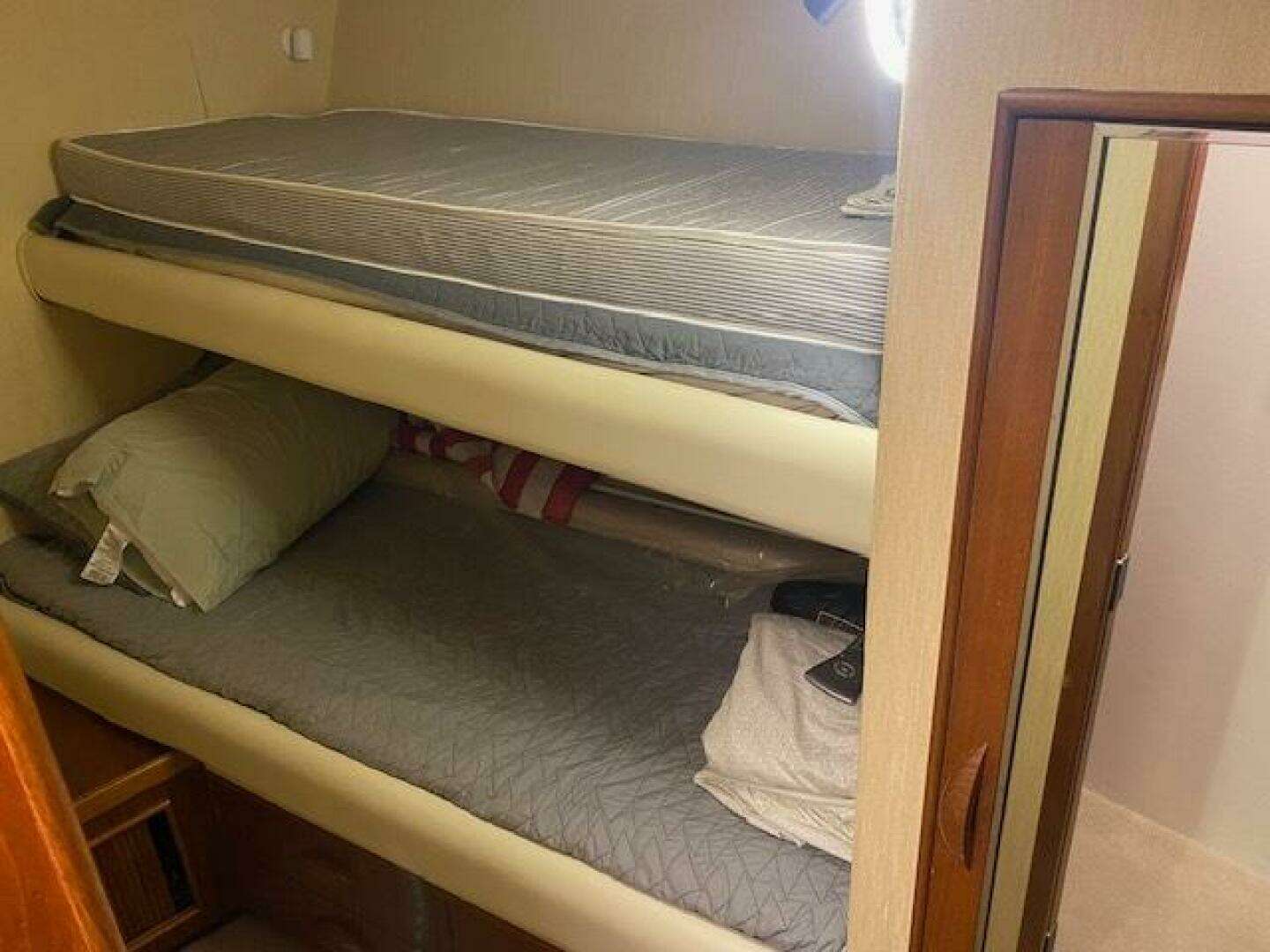74" berths with custom single mattresses and padded rails