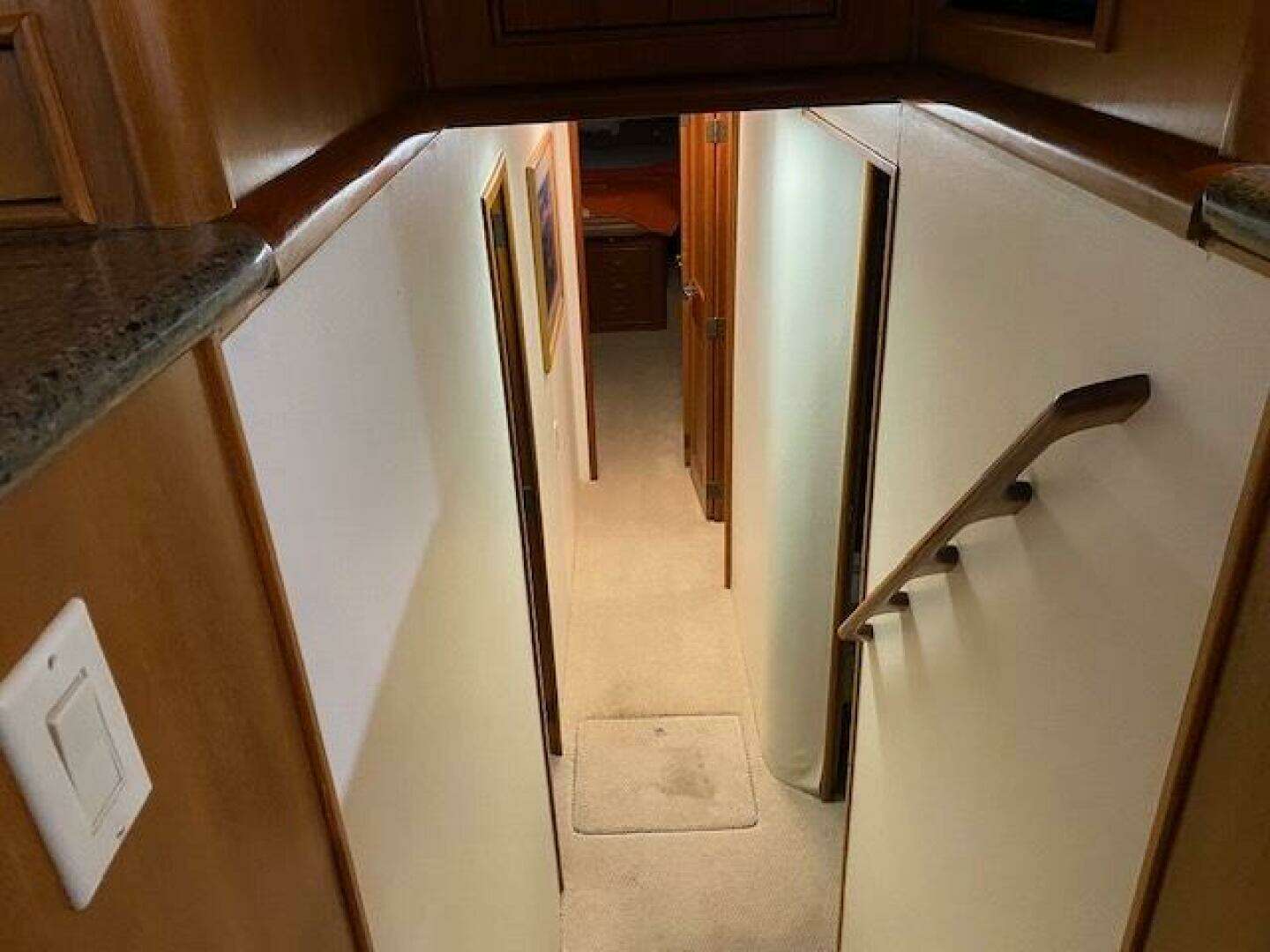 Crew's Quarters are located to the starboard at the beginning of the companionway. Comfortable quarters with a lockable door and shares a head with the Guest Bunk Room