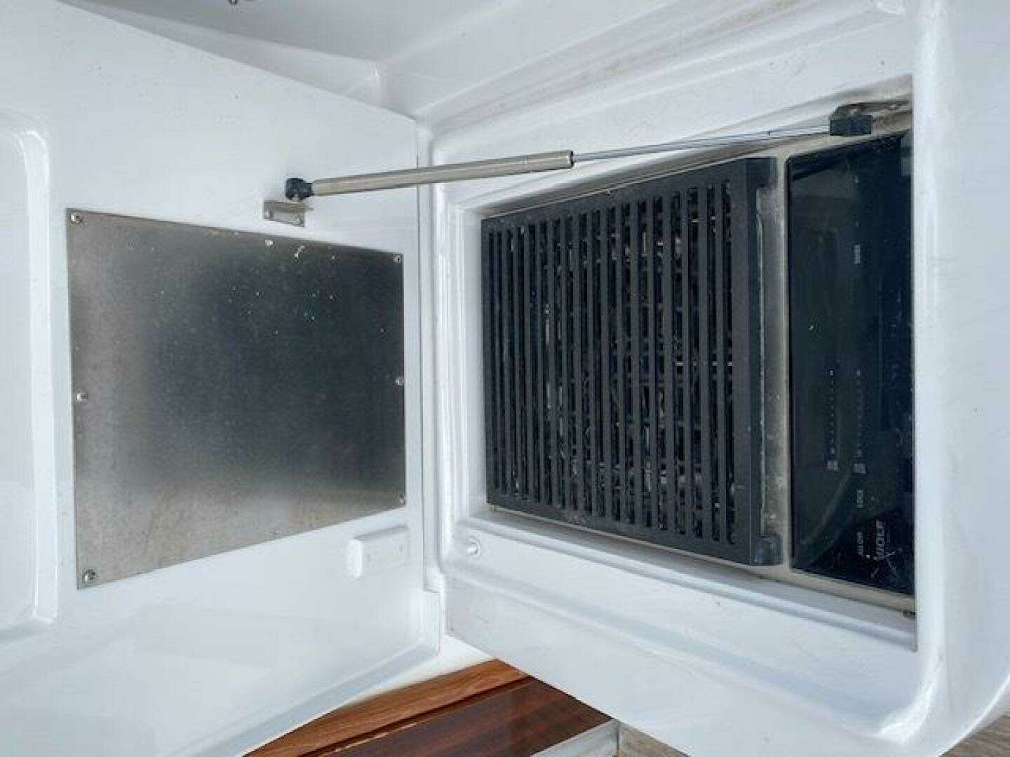Silestone countertop to starboard with Kenmore Elite icemaker, deep storage and AC / DC Ship's Service Panel