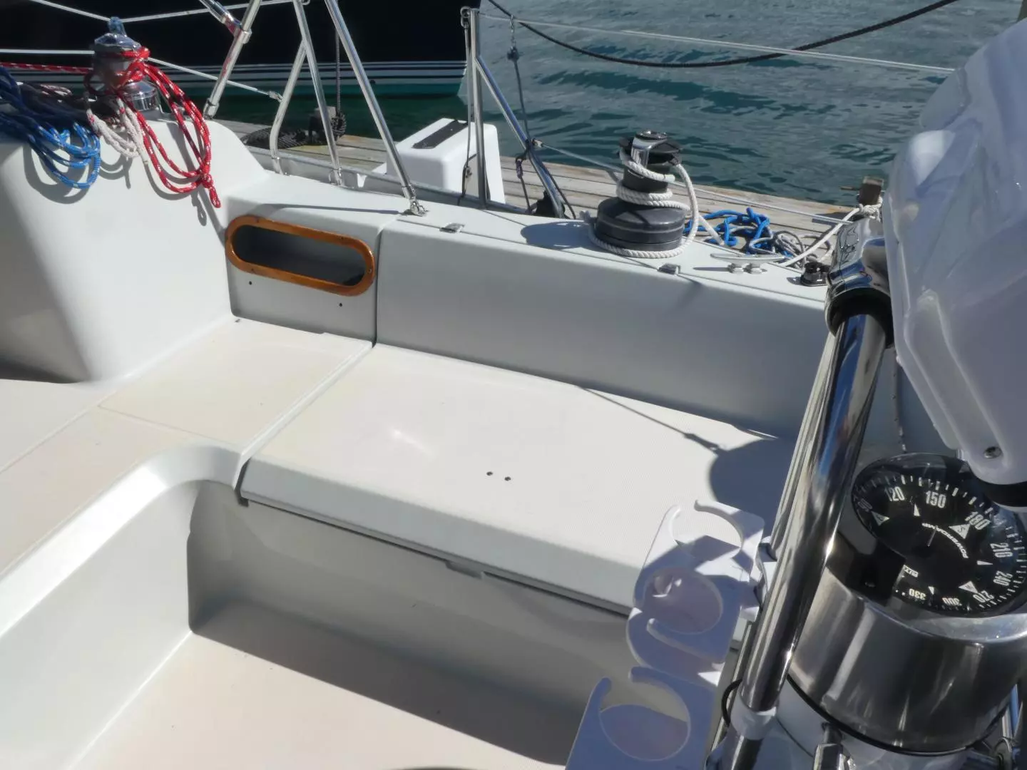 Overall, the interior shows ample volume and lends itself for comfortable lounging when moored and on passage. The ample natural light and air, entering through the numerous opening hatches and portlights will easily keep at bay any feeling of being cooped up in a boat.