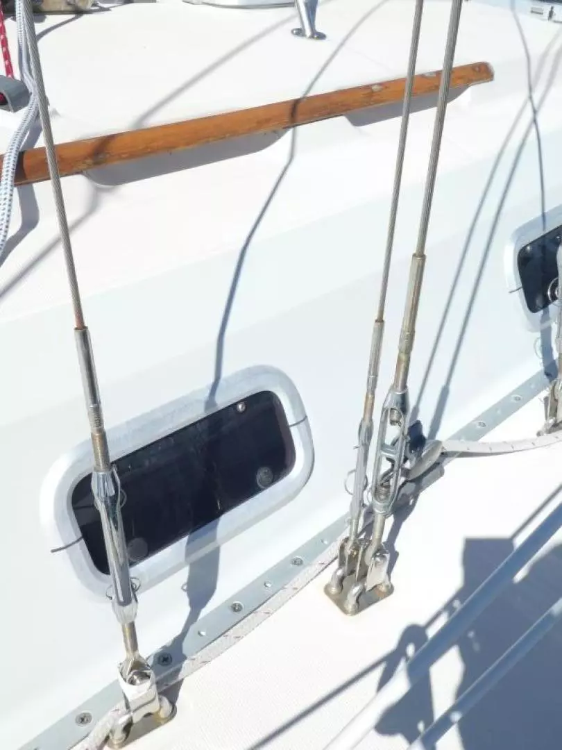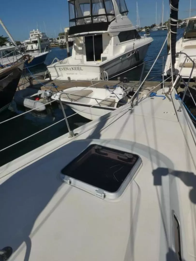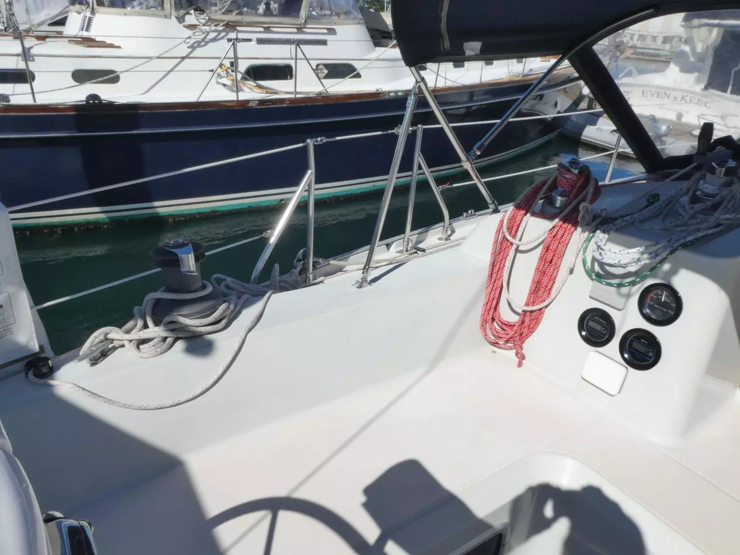 ARETE, is the winged keel version of this boat, which allows her to get into most areas boats of her size would struggle to do. Additionally, with the unique internal tri axial grid structure these boats where built with, make this boat stiff enough to carry ample canvas and withstand a beating when sailing in tough weather.