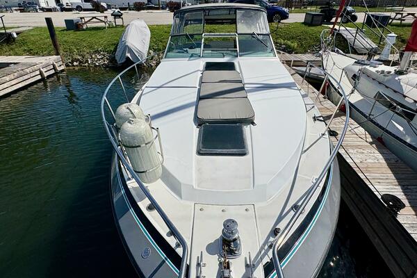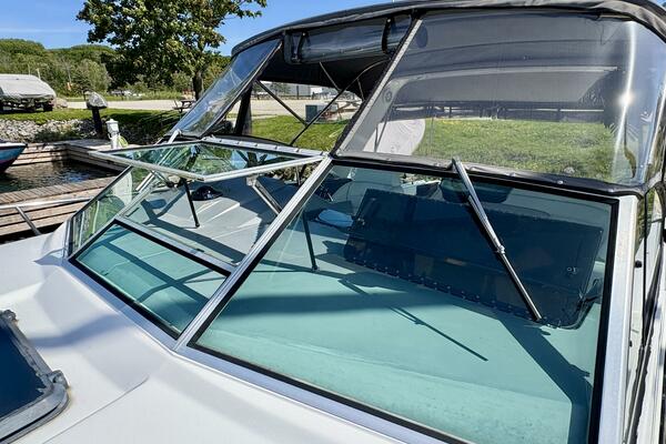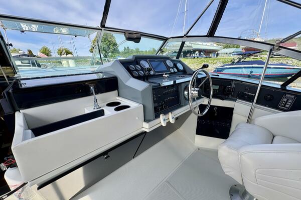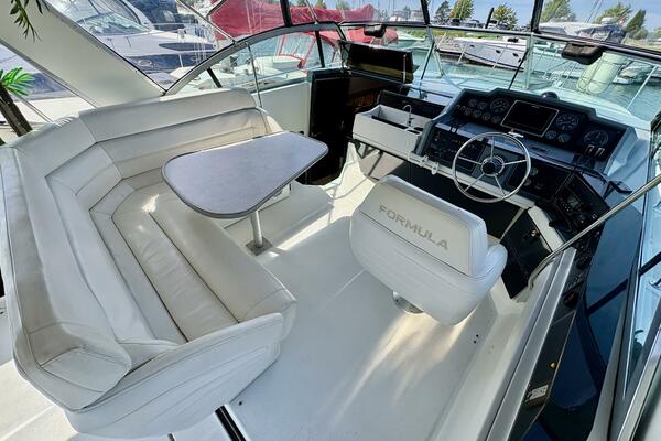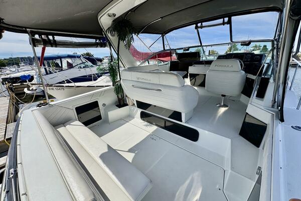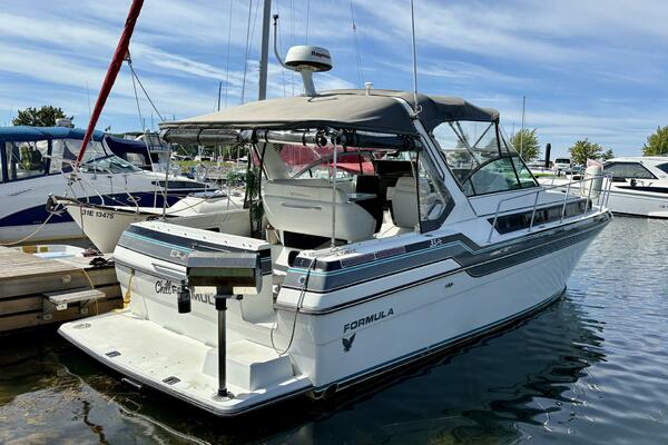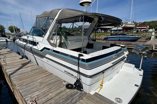 This 1989 FORMULA has been extremely well cared for with many updates over the years including; A custom made cherry wood interior, Newer canvas with full camper back and bow sun pad done by Canadian Yacht Tops, 10kg plow anchor with Maxwell windlass and 200ft of chain, Vacuflush head with custom built STAINLESS STEEL holding tank, NEW 16k BTU Dometic air-conditioner, NEW cockpit upholstery, NEW Raymarine 9" aSeries Touch-Screen, NEW Raymarine Quantum Digital Radar, NEW Standard Horizon VHF, Carburetors rebuilt, NEW stereo, speakers and amps.