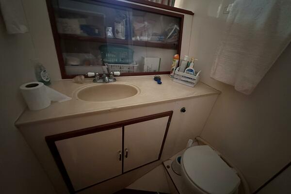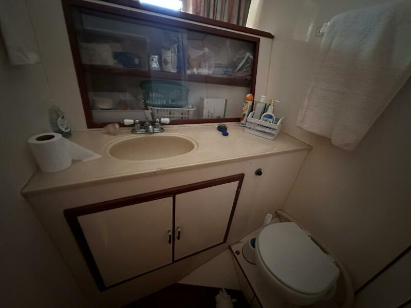 Off the hallway on the port side there is a large enclosed head and sink with a separate walkin shower.