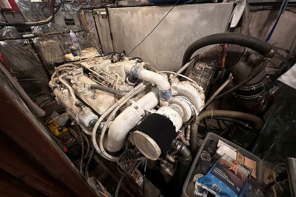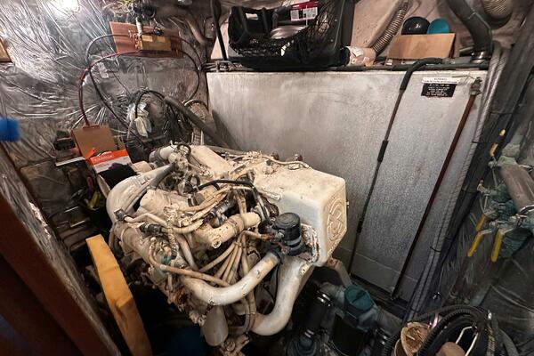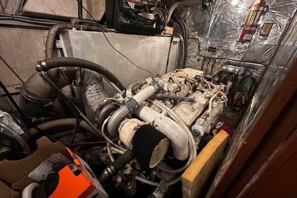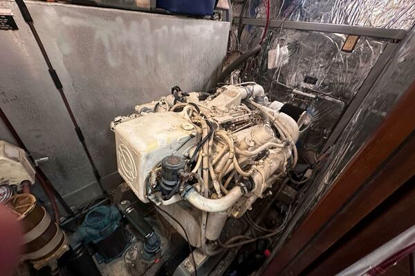 Just aft of the head and guest cabin are two doors on each side of the hallway giving access to the front and back of both the starboard and port engines. This access provides easy serviceability to the engines at port or underway.