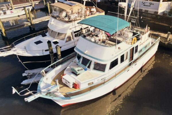 Altamira is a 1989 38' Marine Trader Double Cabin trawler. She offers a single Cummins 210 HP main engine, Vetus bowthruster, Victron Energy inverter, Victron Energy galvanic isolator, some updated electronics and a new flybridge bimini. Altamira is Great Loop capable.