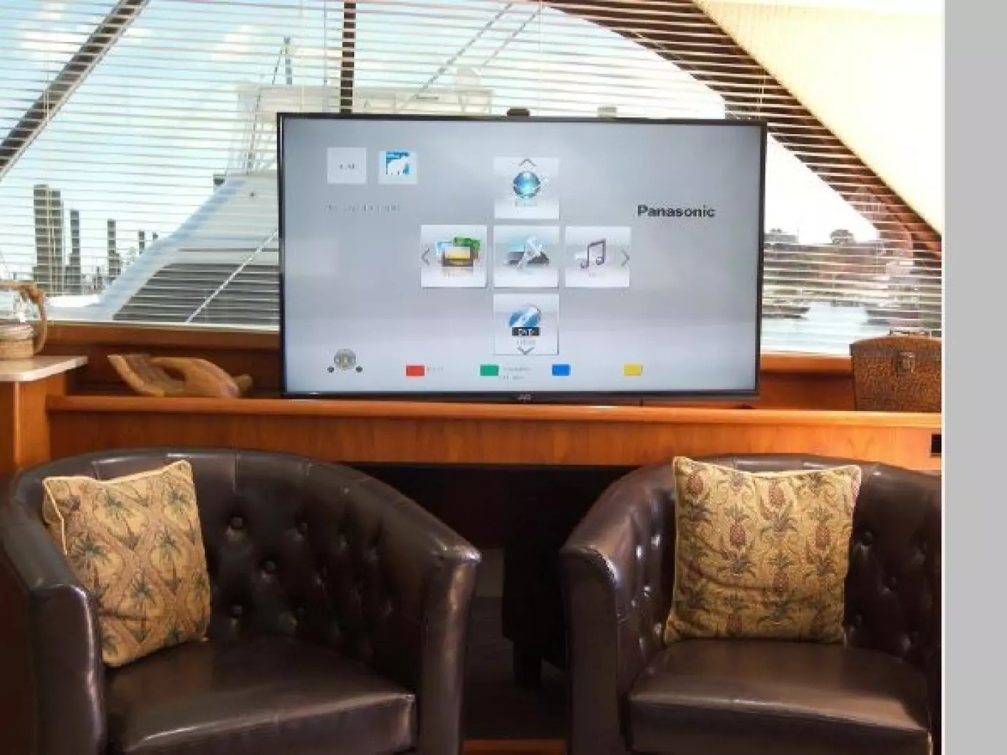 - 50" Flat Screen TV, Recessed in starboard side cabinetry, electric retraction when not in use.
